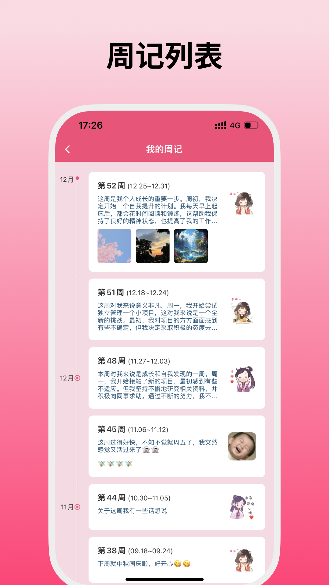 每周一次的周记,是您回顾过去、总结收获的宝贵机会。在《纯纯周记》中,编写周记变得简单而愉悦。我们为您提供智能导入本周所有任务的功能,帮助您深入分析每个任务的进展和成果。此外,我们还准备了周记表情,让您随心记录情绪变化,真实反映周内的心情起伏。周记不仅是记录工具,更是促进个人成长的有力支持。