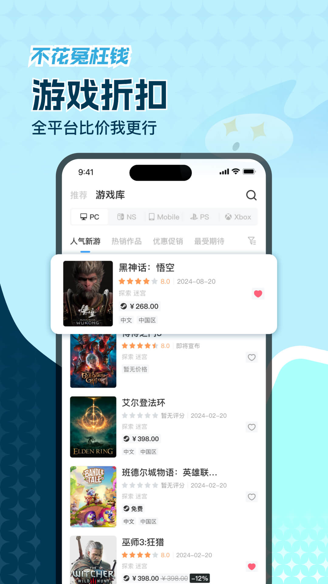 - 能实时查看Steam、Switch等不同平台、不同区域的游戏价格,让您精准把握最佳购买时机。