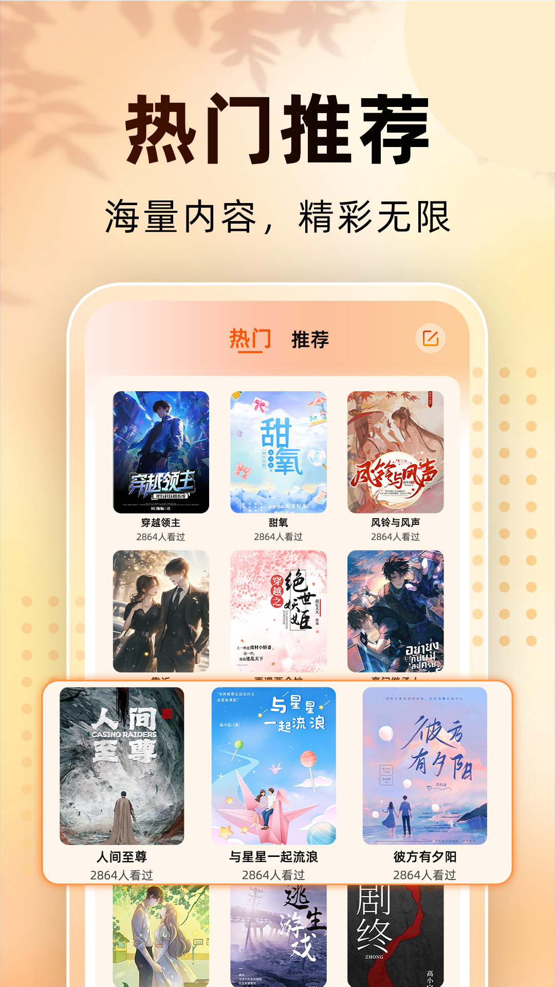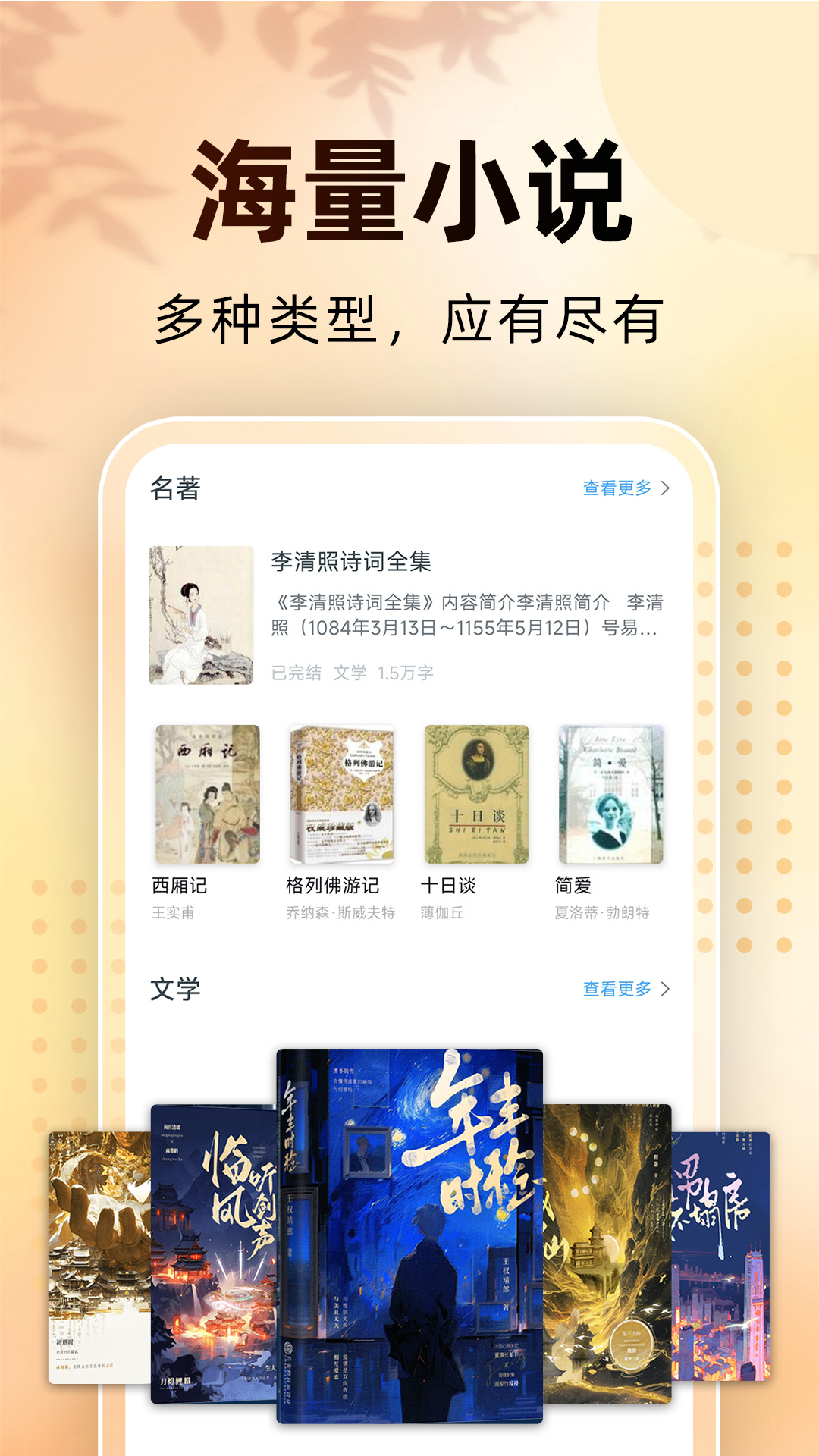 免费看小说,丰富的小说资源,操作 简单,支持本地阅读、自动阅读、夜间模式、亮度调节等,给你纯净体验。