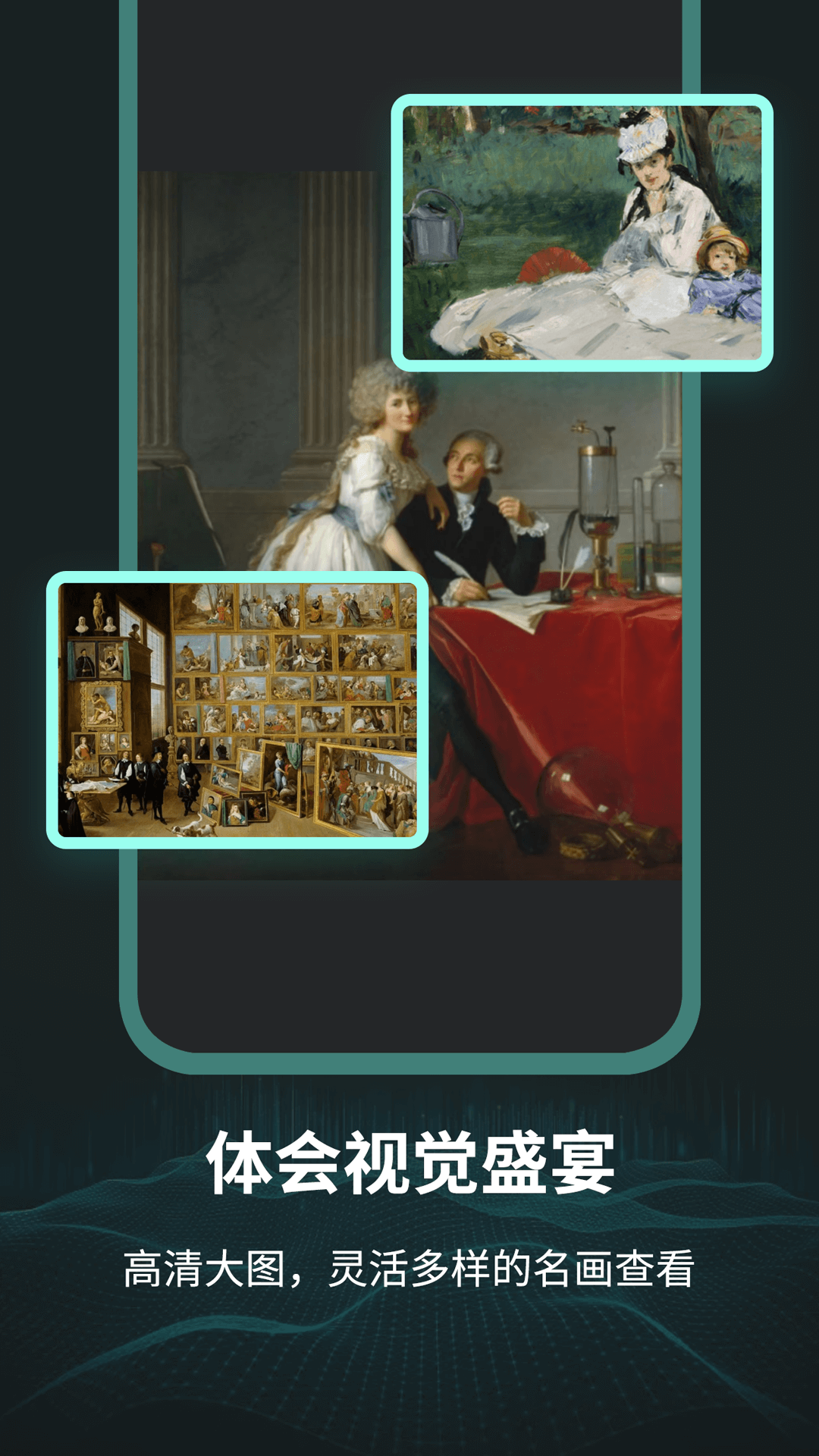 2、提供数量庞大的高清美术作品以及照片素材,让您能够从各种各样的角度赏析这些名画。