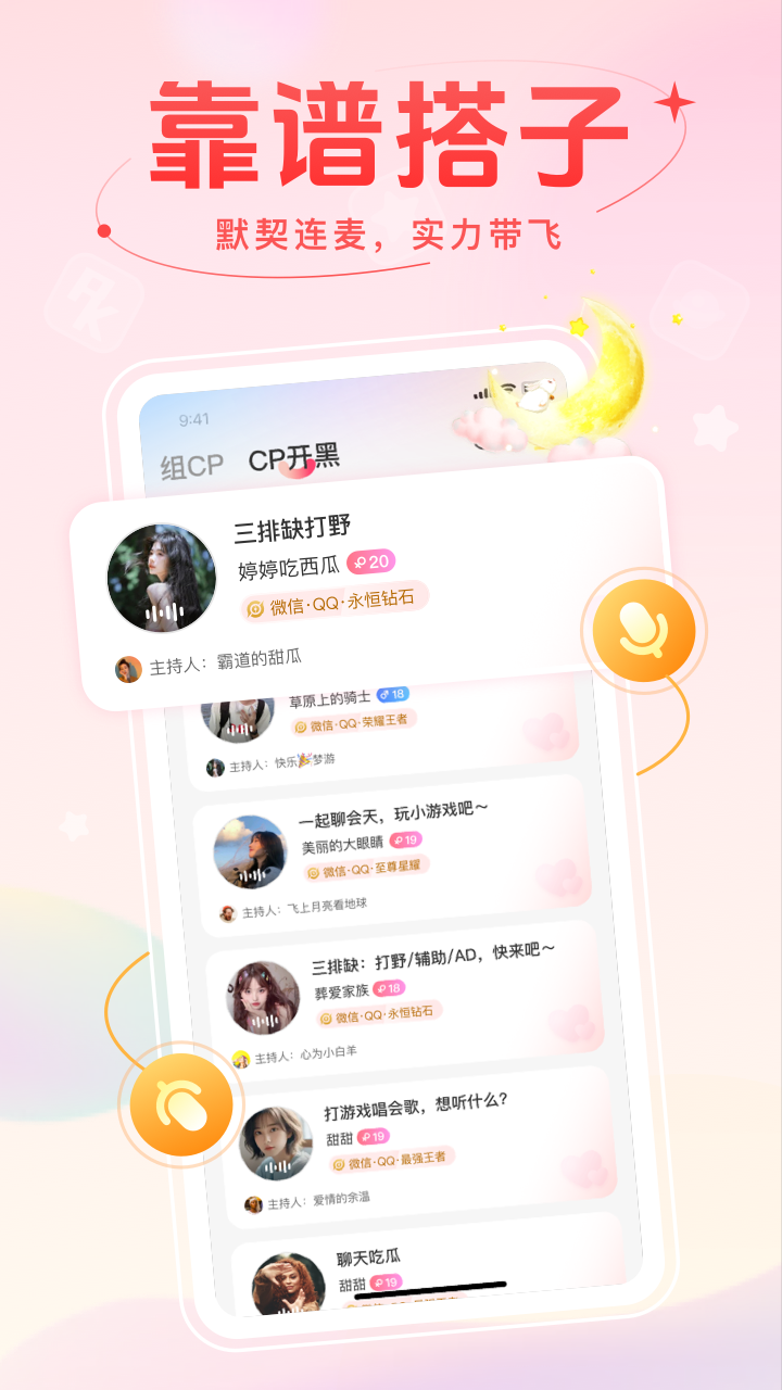 麦甜可是专门为年轻人量身定制的开黑、交友、组CP的平台哦!