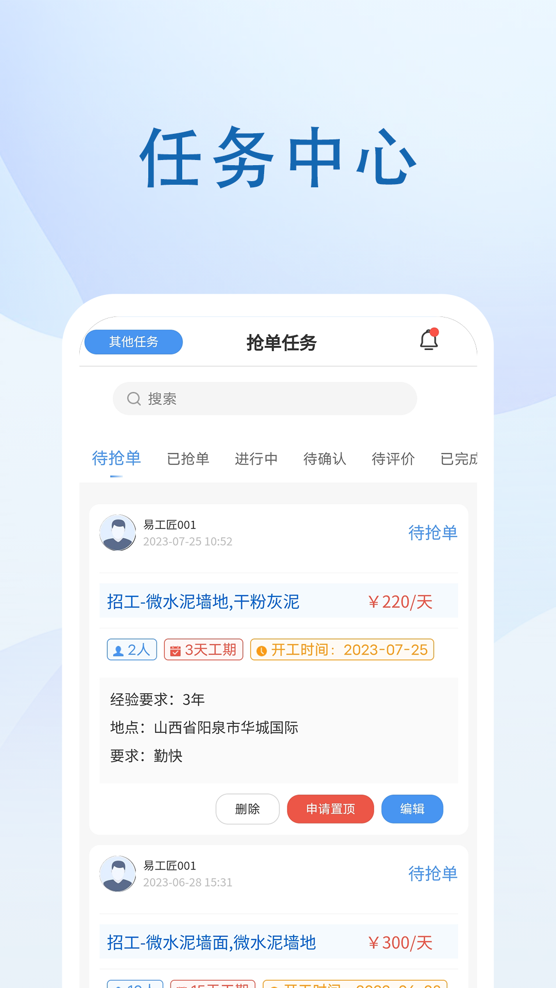 求,支持师傅评分系统,平台代叫工人服务,让