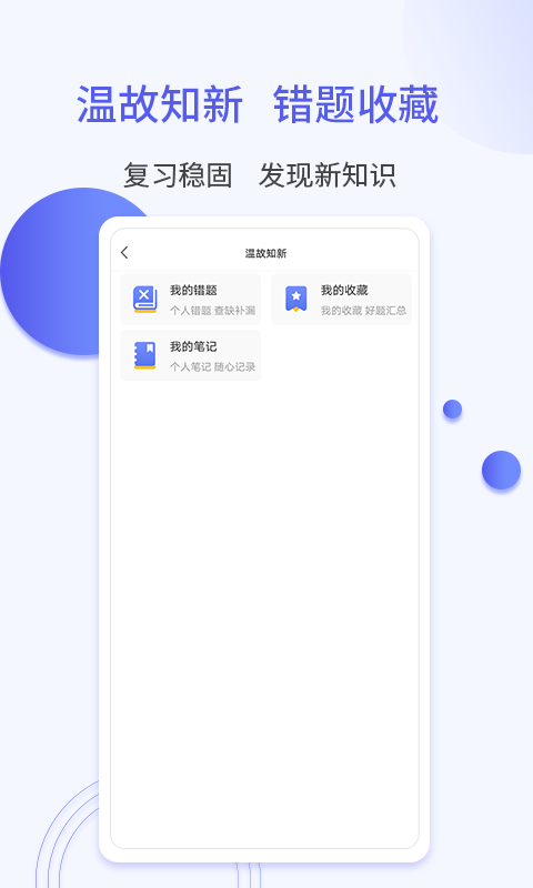 - 具备温故知新功能,错题可收藏起来,方便复习稳固知识,在复习过程中还可能发现新知识。