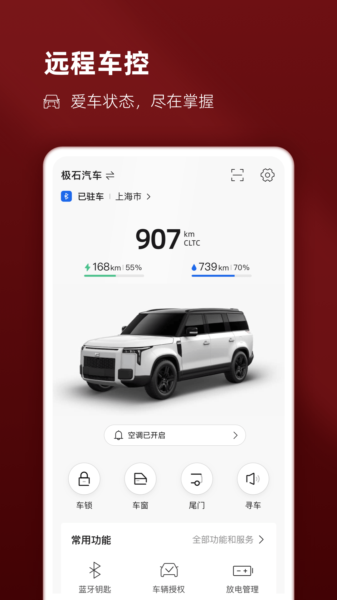 车控板块:当您的爱车激活之后,就能实时查看爱车的位置、电量、油量、充电等情况,而且还能进行远程控制车辆。