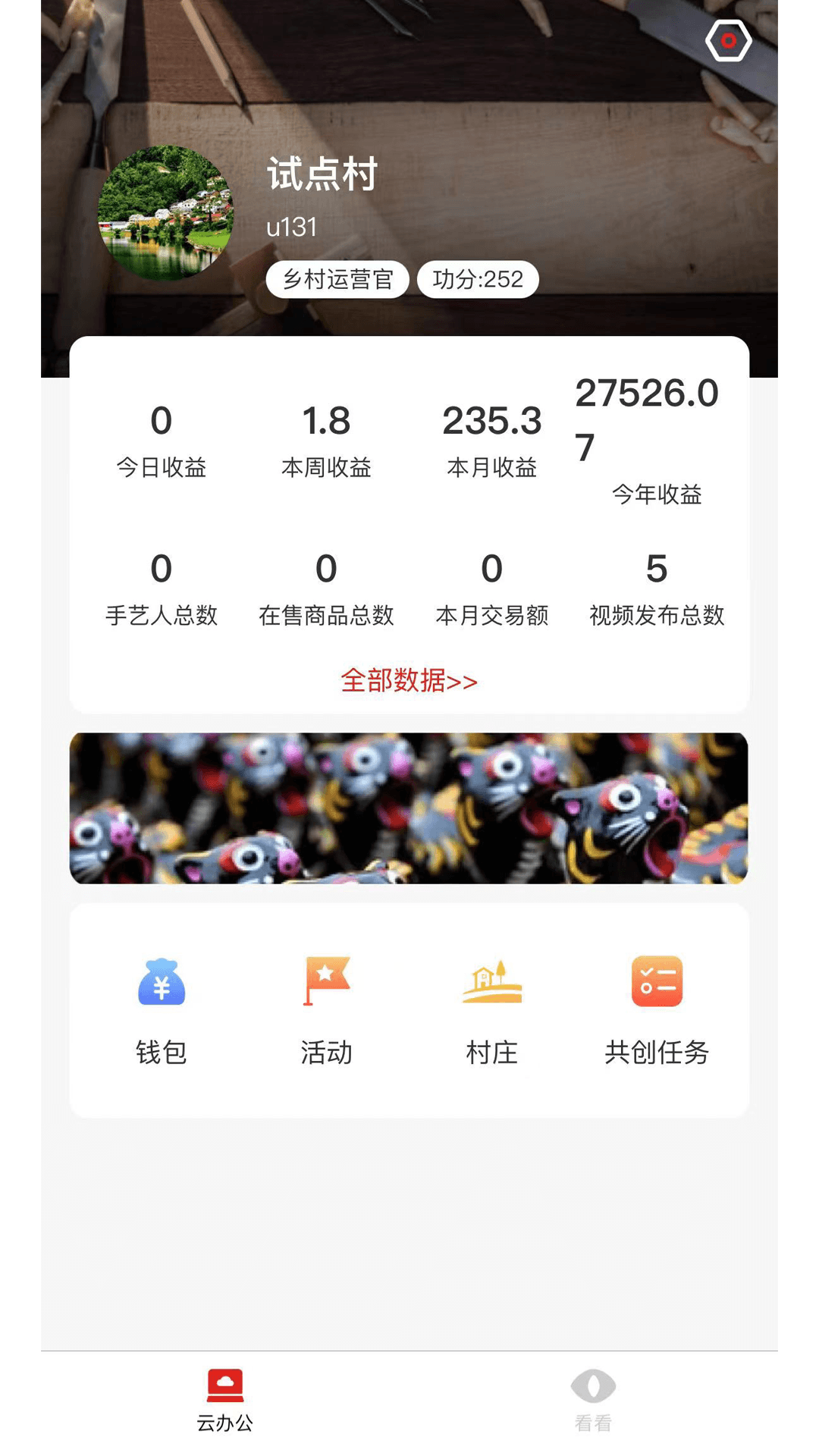 千百匠上下游及内部协同系统,事业共创伙伴的云办公平台。包括乡村运营官管理系统,榜样,讲堂,村庄管理等功能。