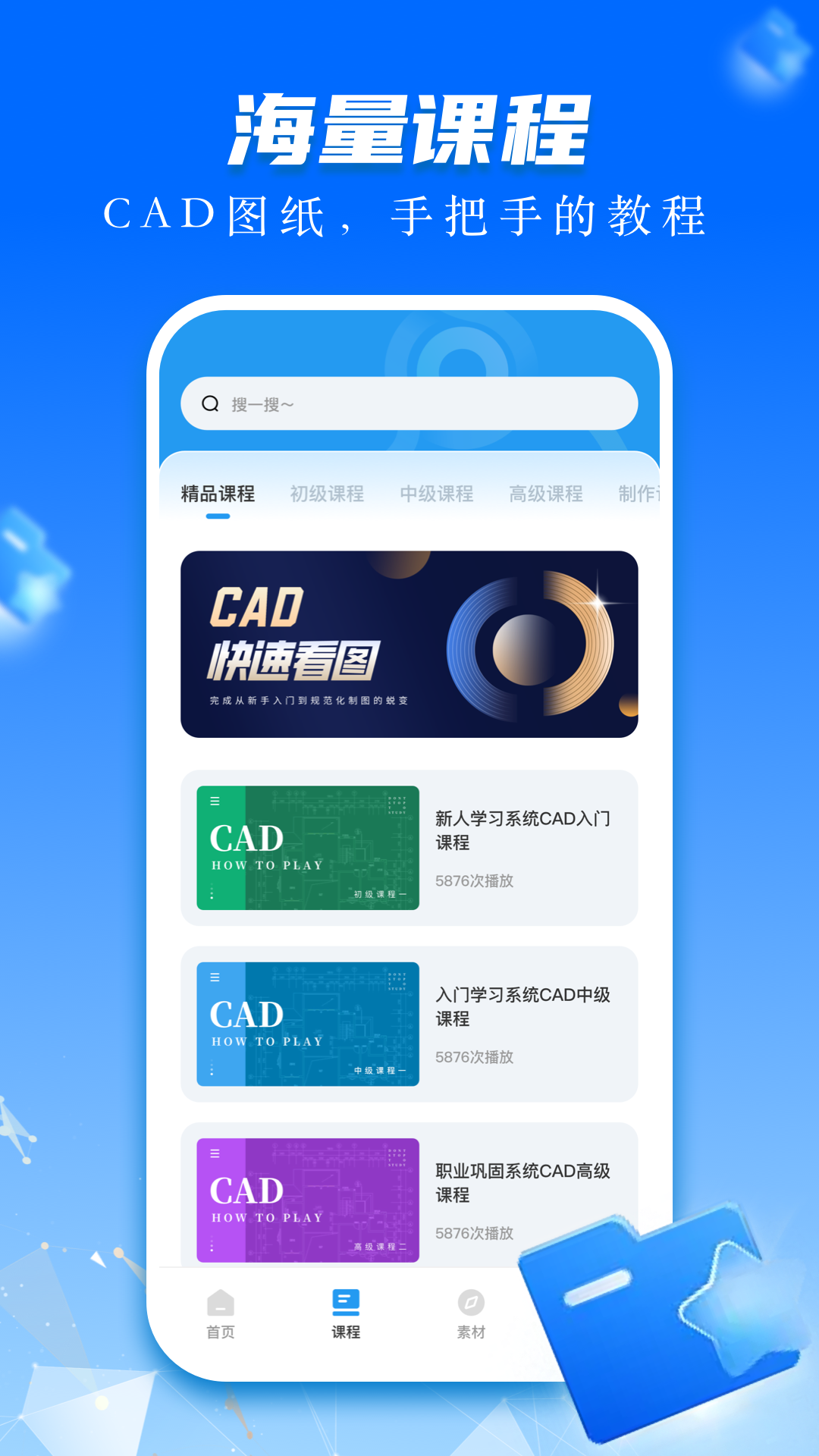 这款软件包含AutoCAD、浩辰CAD、天正建筑、酷家乐、BIM、知户型、齐家等国内外众多CAD图纸格式的视频教程,不仅能让用户实现CAD手机看图、快速看图,还支持DWG图纸编辑、DWG图纸测量、CAD图块统计、CAD测量、文字处理等操作。