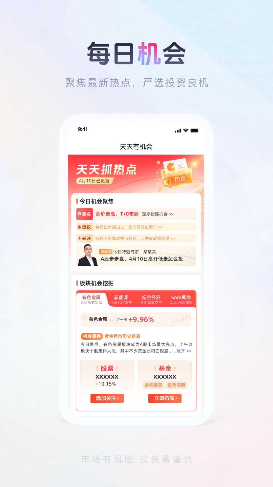 5. 股票快速交易与行情服务:提供沪深A股、B股股票、基金、港股通等交易服务,并且提供沪深A股、B股、基金、期权、期货、债券、港股、美股等主要金融市场的交易行情。