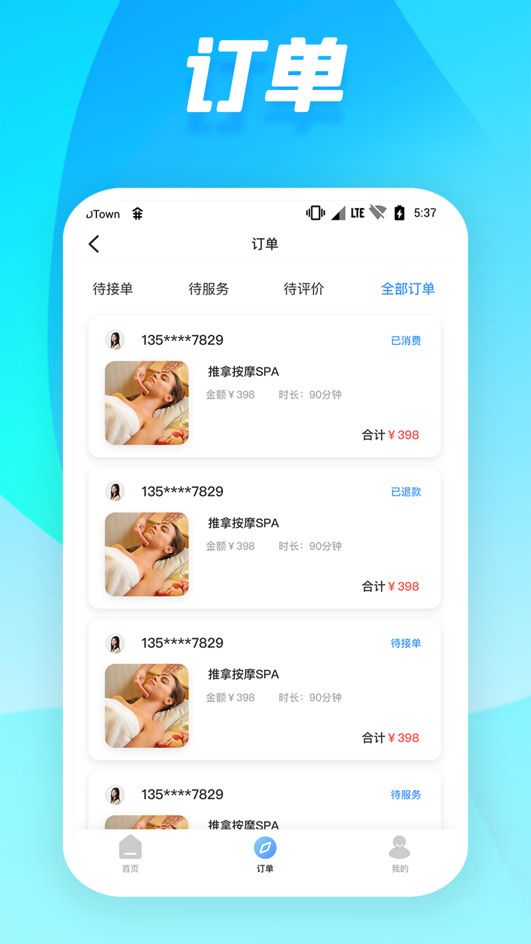 舞指接单,这是一个在线的按摩接单平台,它就像一座桥梁,将按摩师与用户紧密连接起来。在这个平台上,用户能够轻松地预约按摩师,然后在自己期望的时间和地点惬意地享受按摩服务。