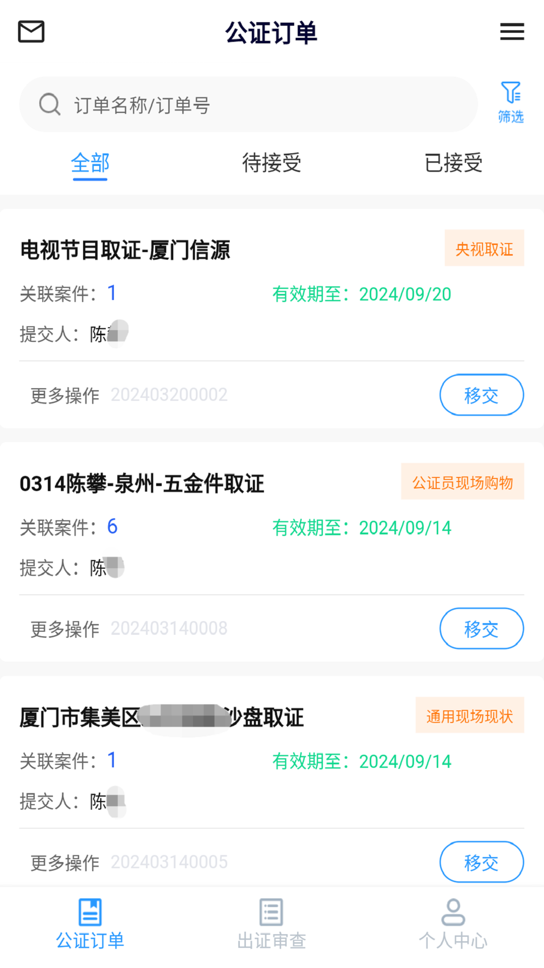 2、证前业务:公证人员可以查看、管理所参与取证订单、在线公证订单,添加取证订单的公证参与人;提供在线视频咨询服务;