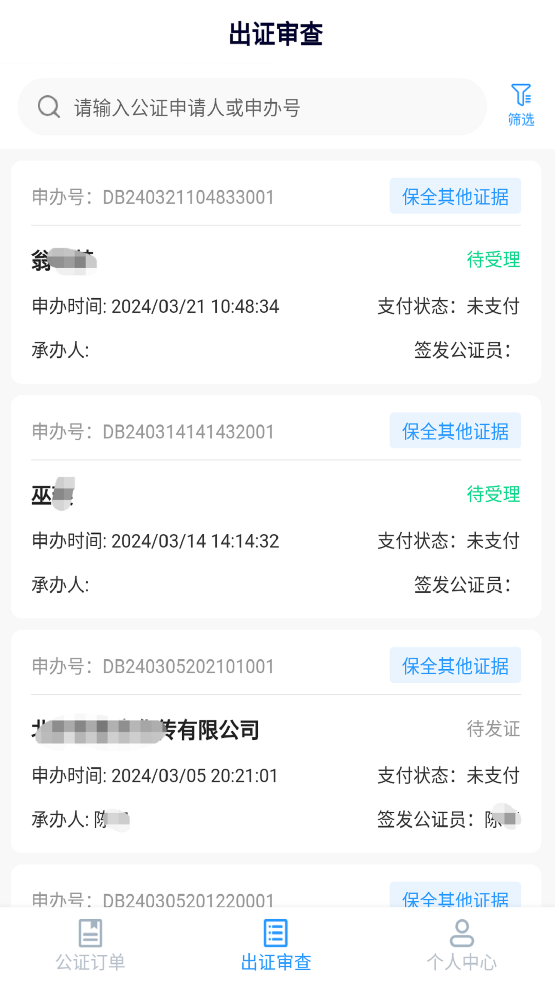 证保助手是为公证处工作人员量身定制的处理公证事务的应用,集取证案件管理、取证订单管理、咨询接谈、出证业务审批管理等功能,以满足移动办证、协同办证的业务需求,提高工作效率。