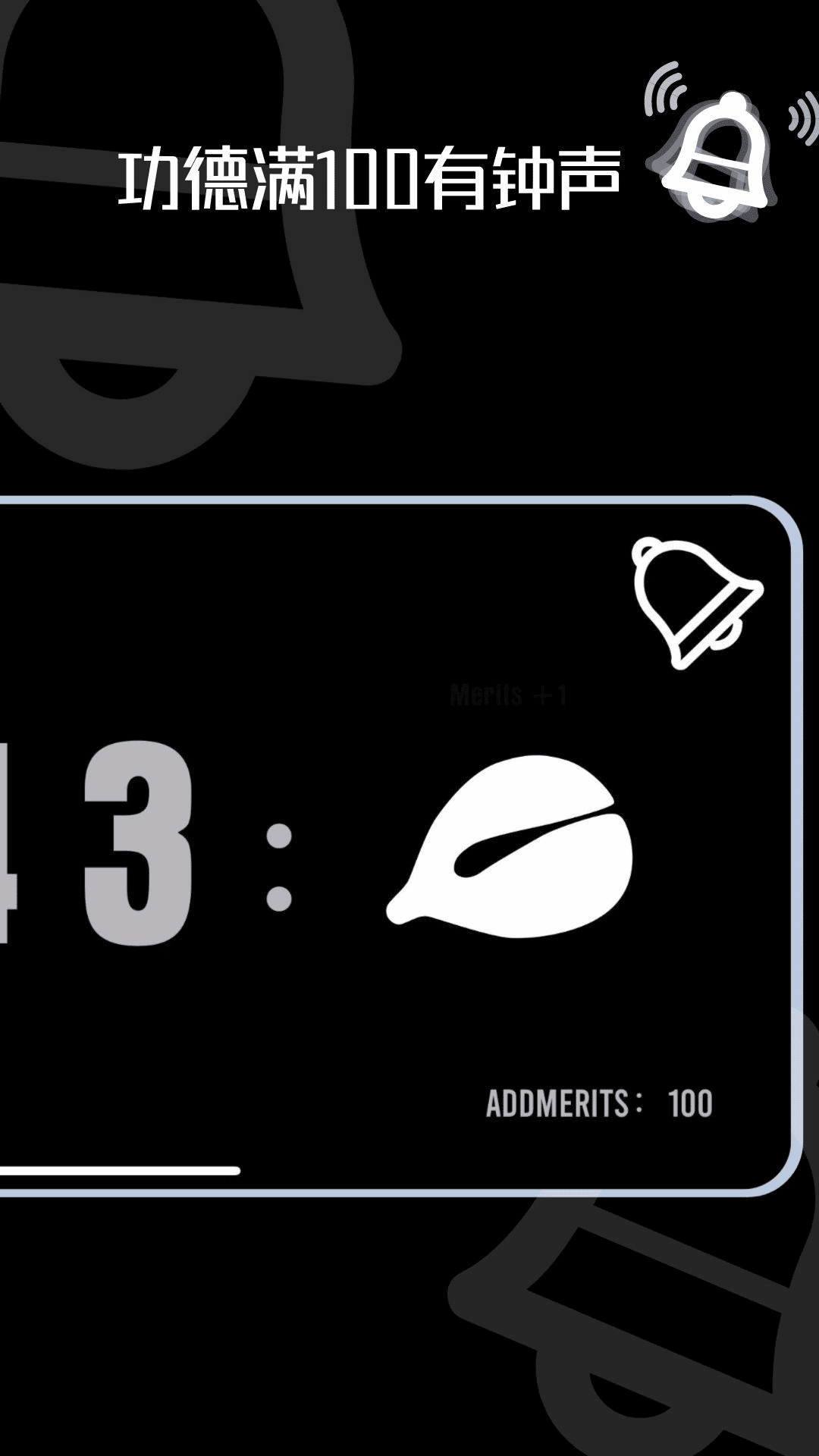 功德每满100会有钟声,美妙的木鱼声和寺庙的钟声交相辉映,温柔地触动心弦。它们的韵律交织出一幅令人平静的画面,化解日常的压力。