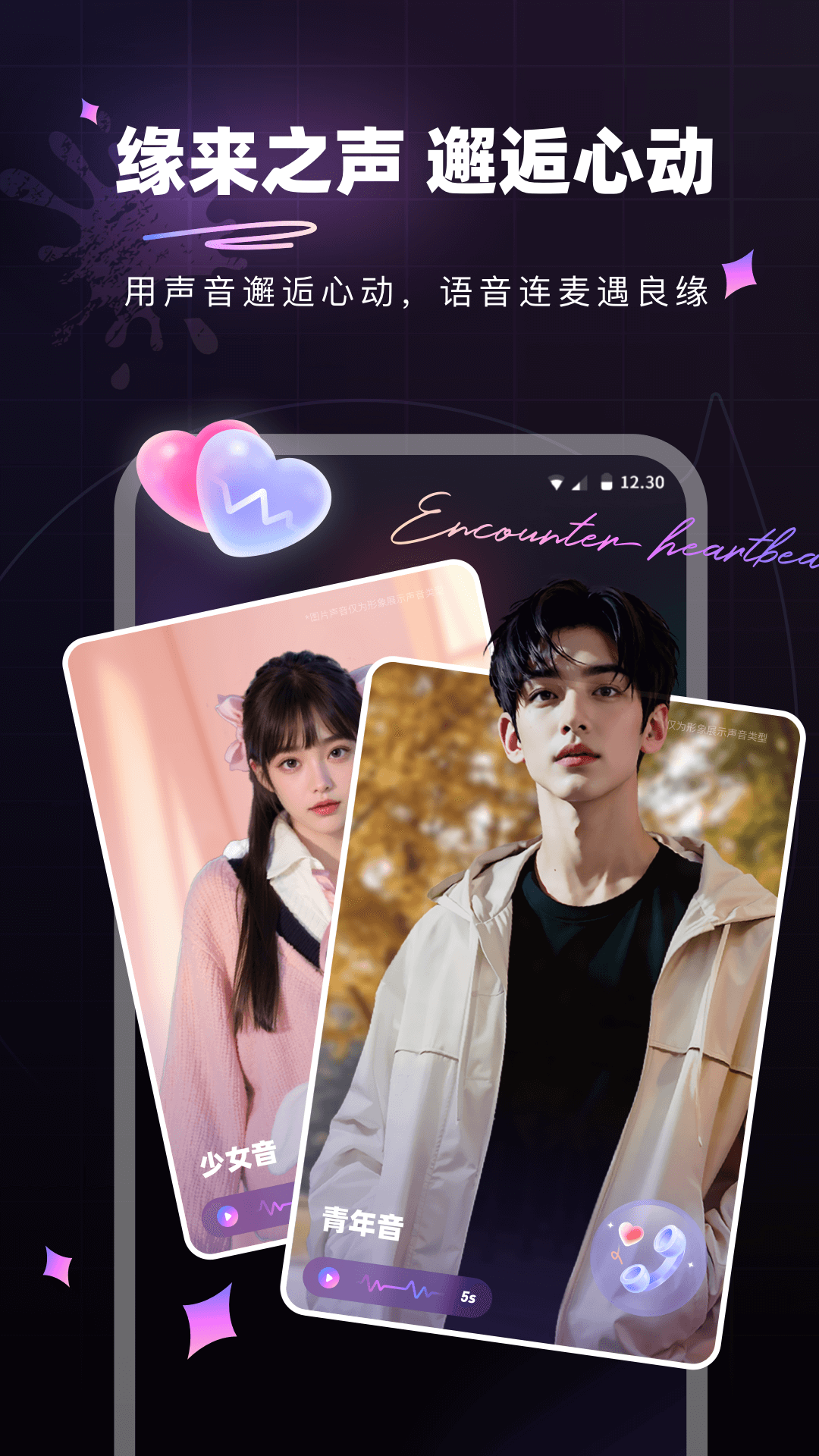 【心动声音】在这里与音色各异的小哥哥、小姐姐语音畅聊,无论是充满磁性的青叔音、温柔清新的温青音,还是俏皮可爱的学妹音,必然有一款声音能俘获你的心。