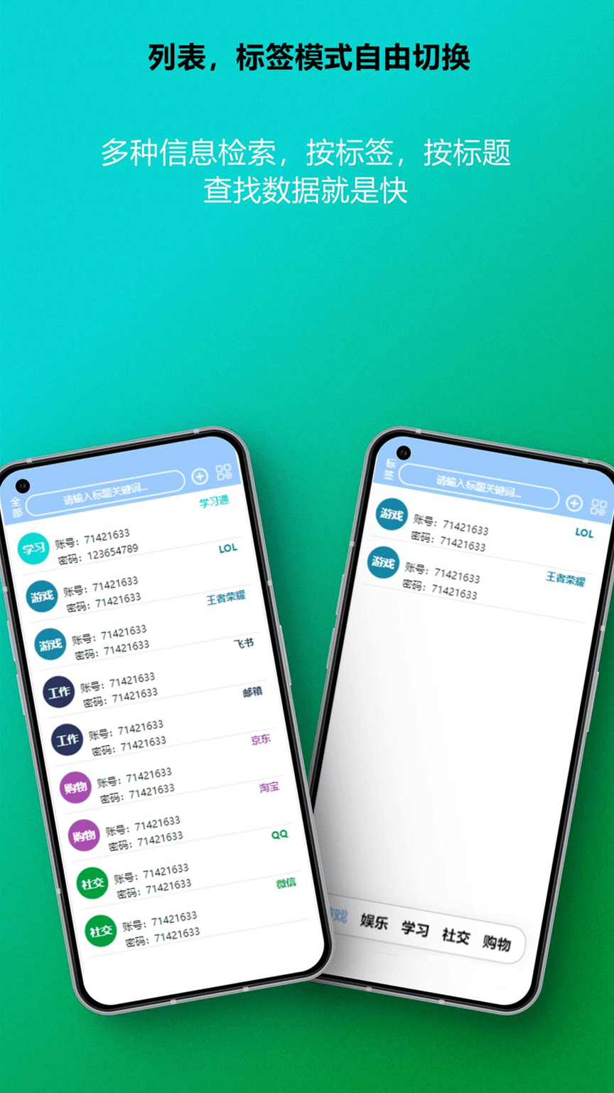 另外,能无限量添加多彩标签,使得账号分类更加清晰明了。