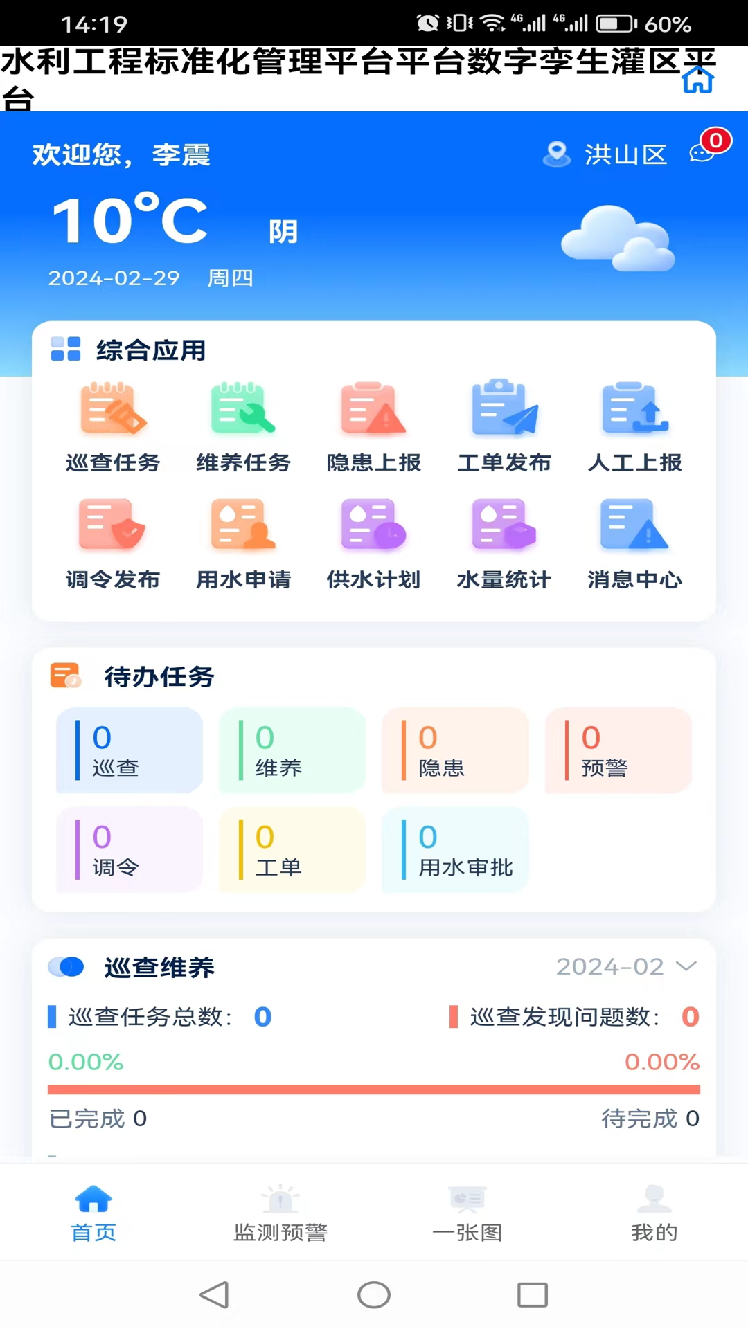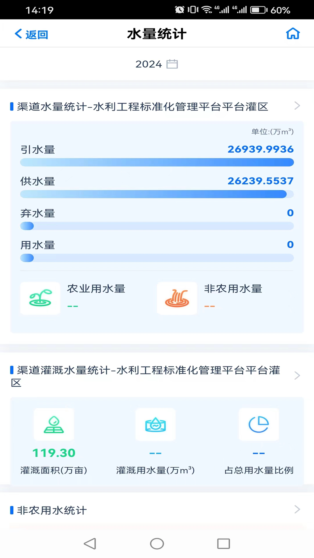 帮助灌区进行日常办公,减轻工作量,提高信息化程度。在app上查看灌区的用水量,用水单位等信息,以及灌区开展巡查,用水申请。