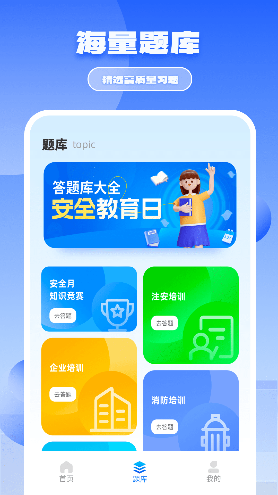 这是一款众多学员考证时都在使用的备考APP哦,赶快下载体验吧!这个题库是专门为参加安全生产月学习考试的学员精心打造的考试配套题库,其内容包含:精心挑选的海量题库、多种不同类型的题目分类、可在线答题的便捷功能,还有优秀讲师的详细讲解。