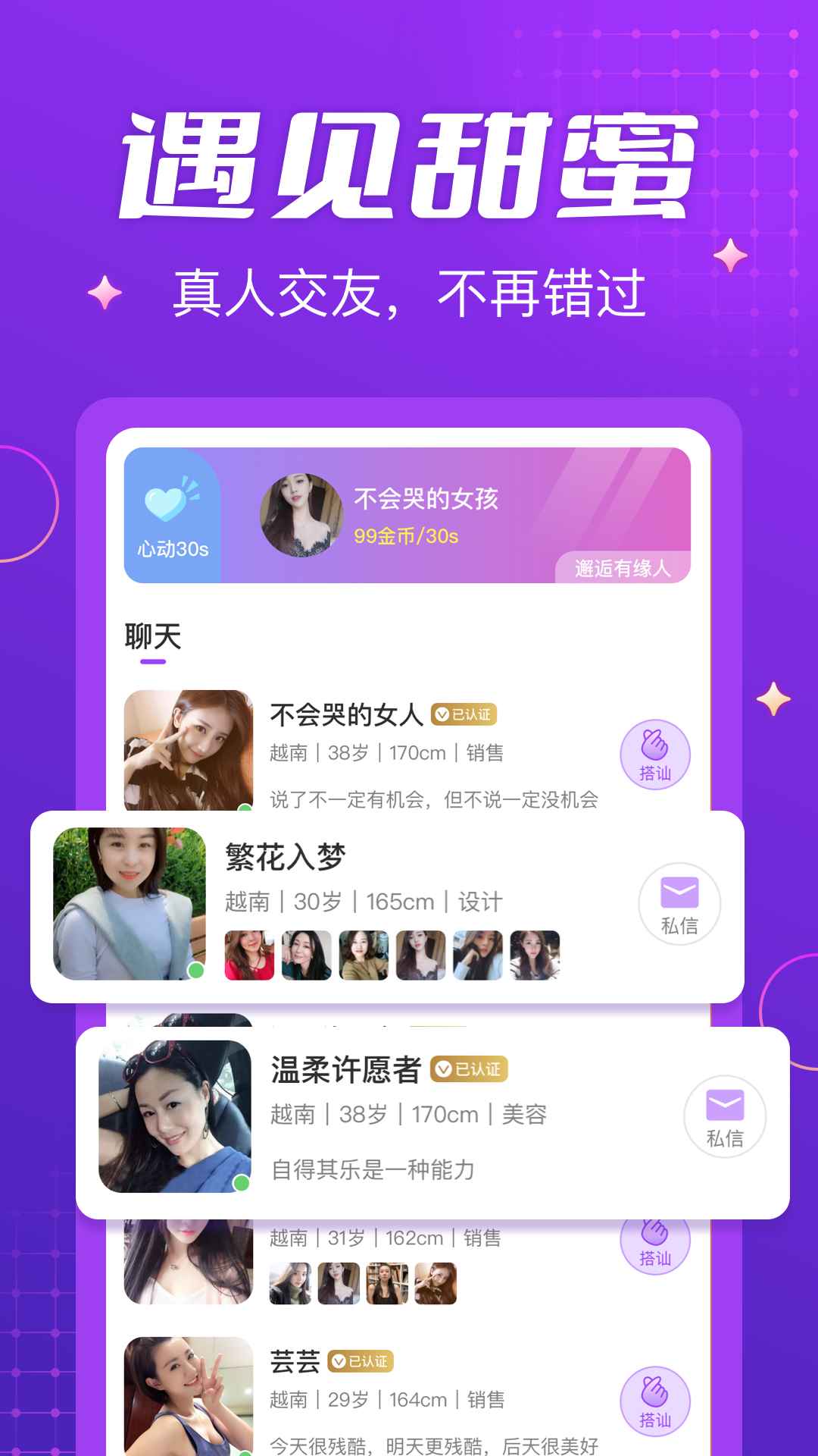 越情,是一个专门为陌生人构建的异国社交平台。在这个平台上,有着许多与你年龄相近的异性哦。它提供了丰富的交流方式,不管是实时视频聊天,还是语音聊天、文字聊天,都能轻松实现。在这里,你能够抛开内心的枷锁,以开放的心态去交友,与心仪的人畅谈感兴趣的事情呢!
