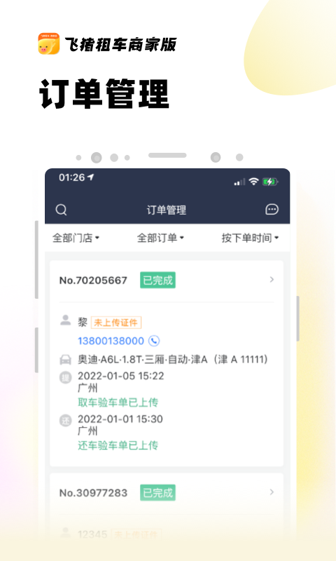 飞猪租车商家版是飞猪旅行旗下租车品牌,专为国内中小型汽车租赁公司提供专业、高效、智能的租车管理系统,功能包括车辆管理、车辆价格管理、订单管理、库存管理、门店管理、条款管理、财务对账、运营报表、黑名单管理等。