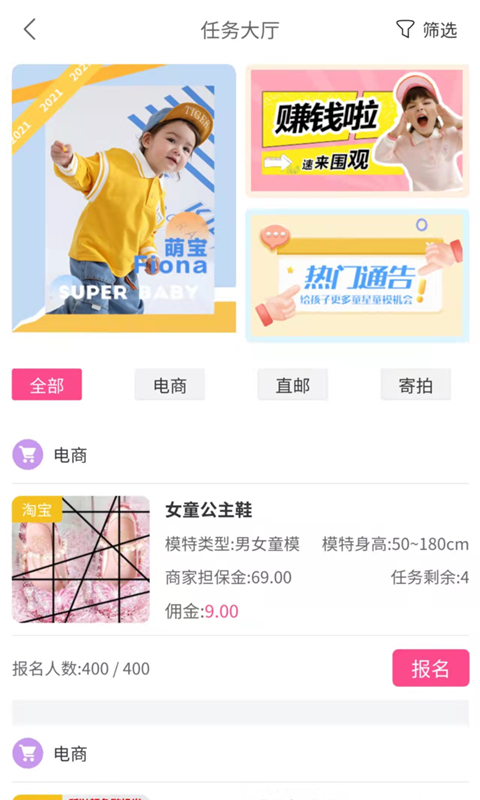 该平台专注于优质母婴类产品。在这里,宝妈们可以通过购买母婴产品后晒出宝贝的美照,展示宝贝可爱美丽的一面。这一过程有助于培养和锻炼宝贝的镜头感、表现力以及配合度,使其达到专业模特的水平。同时,宝妈们也能在购物拍照的过程中提升自身的摄影技术与审美意识,进而具备承接商业拍摄的能力。在宝模秀平台上,宝贝成为模特,宝妈就如同摄影师,能够直接承接商家的产品展示图片拍摄任务。