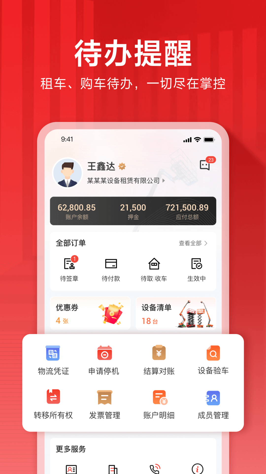 集易行App是一个专门为租赁商打造的高空作业设备租赁服务平台。在这个平台上,租赁商法人能够通过创建账号或者授权多用户账号,从而在客户端开展多项业务操作。这些业务操作包括自助下单、在线签单、在租赁过程中对设备进行管控,以及在线支付订单款项等。