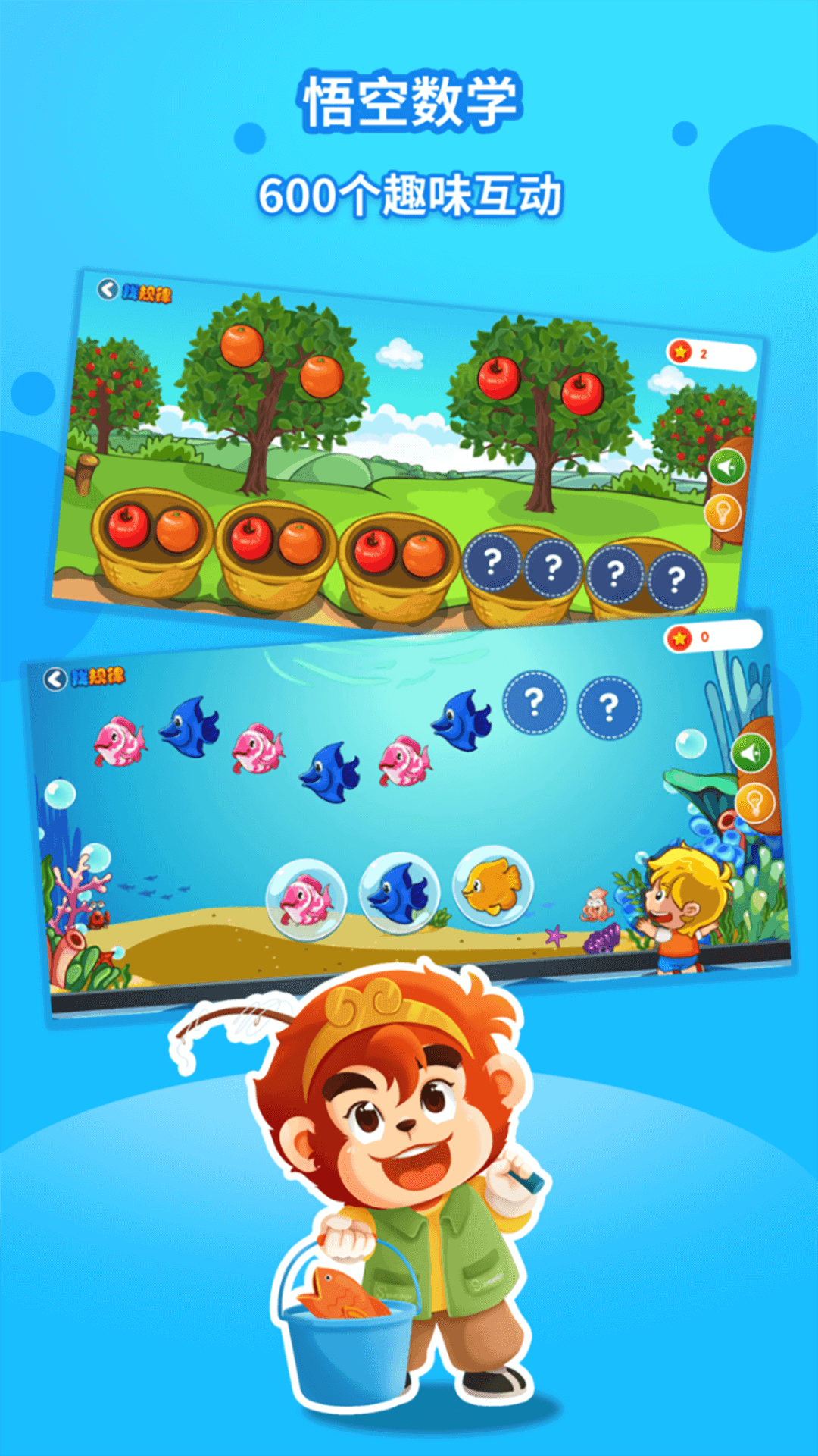 悟空数学经典版以趣味的动画互动为引导方式,激励孩子们去观察、去探索。在这个过程中,孩子们能够尝试进行简单的分类与概括。它将数学知识融入到真实的生活环境里,借此培养孩子们的好奇心,让孩子们初步感受到生活中的数学是既有用又有趣的,能够感知空间和形状,对数、量以及数量关系有所理解。