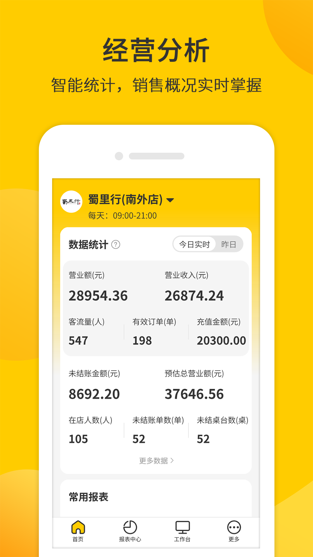 商家借助手机就能轻松管理门店,可实时掌握门店的营运状态,实现对门店运营情况的即时管控。