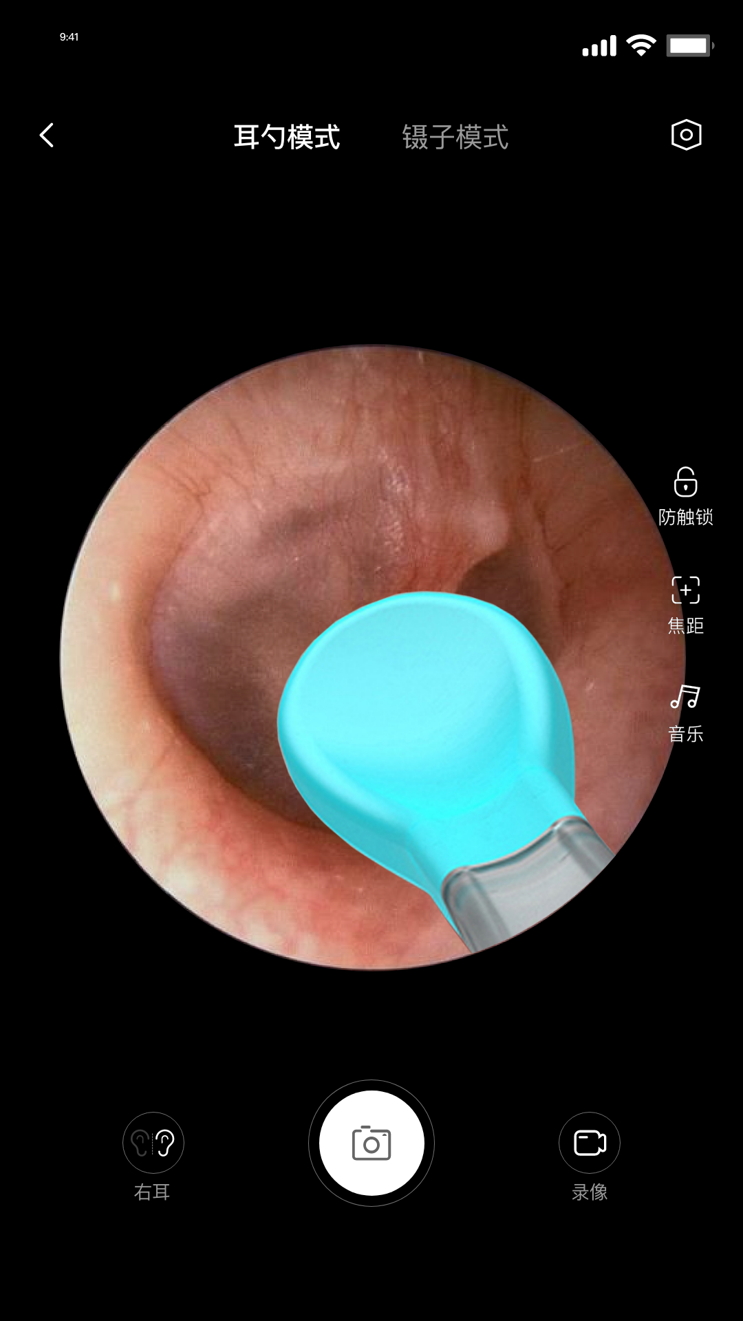 在采耳的时候,还能够进行拍照、录像操作。为了避免在采耳过程中误触屏幕这种情况的发生,该App还设有采耳过程锁屏功能。