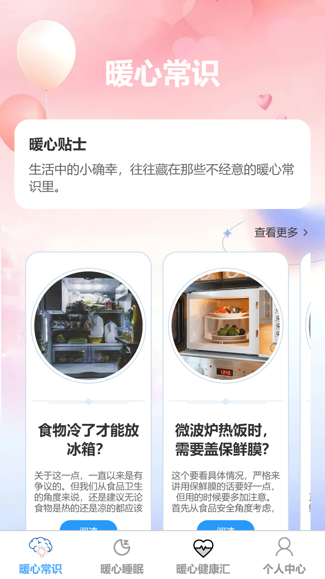 暖心充充,这是一款融合暖心常识、睡眠优化以及健康监测功能的贴心应用,它全心全意为您构建一个温馨且全面的健康管理系统。在如今这个快节奏的社会里,暖心充充就像一位充满温情的守护者,引领您开启一段身心舒畅的暖心之旅。