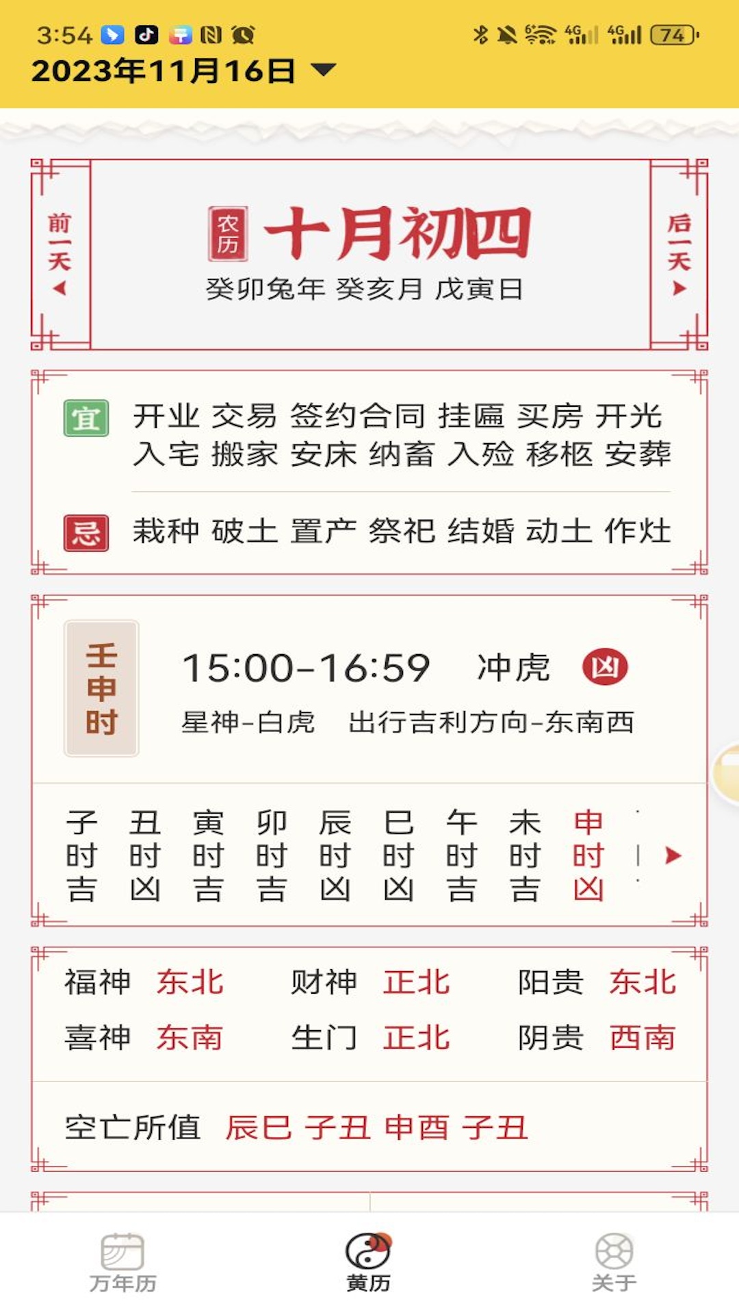 其一,黄历查询功能详尽。在易象老黄历APP里,用户能够依据日期查询当日的黄历详情,像宜忌事项、冲煞情况以及时辰信息等都涵盖其中。这些黄历信息对人们规划日常生活和各项活动大有裨益,能助力人们获取较好的运势,同时规避不利因素。