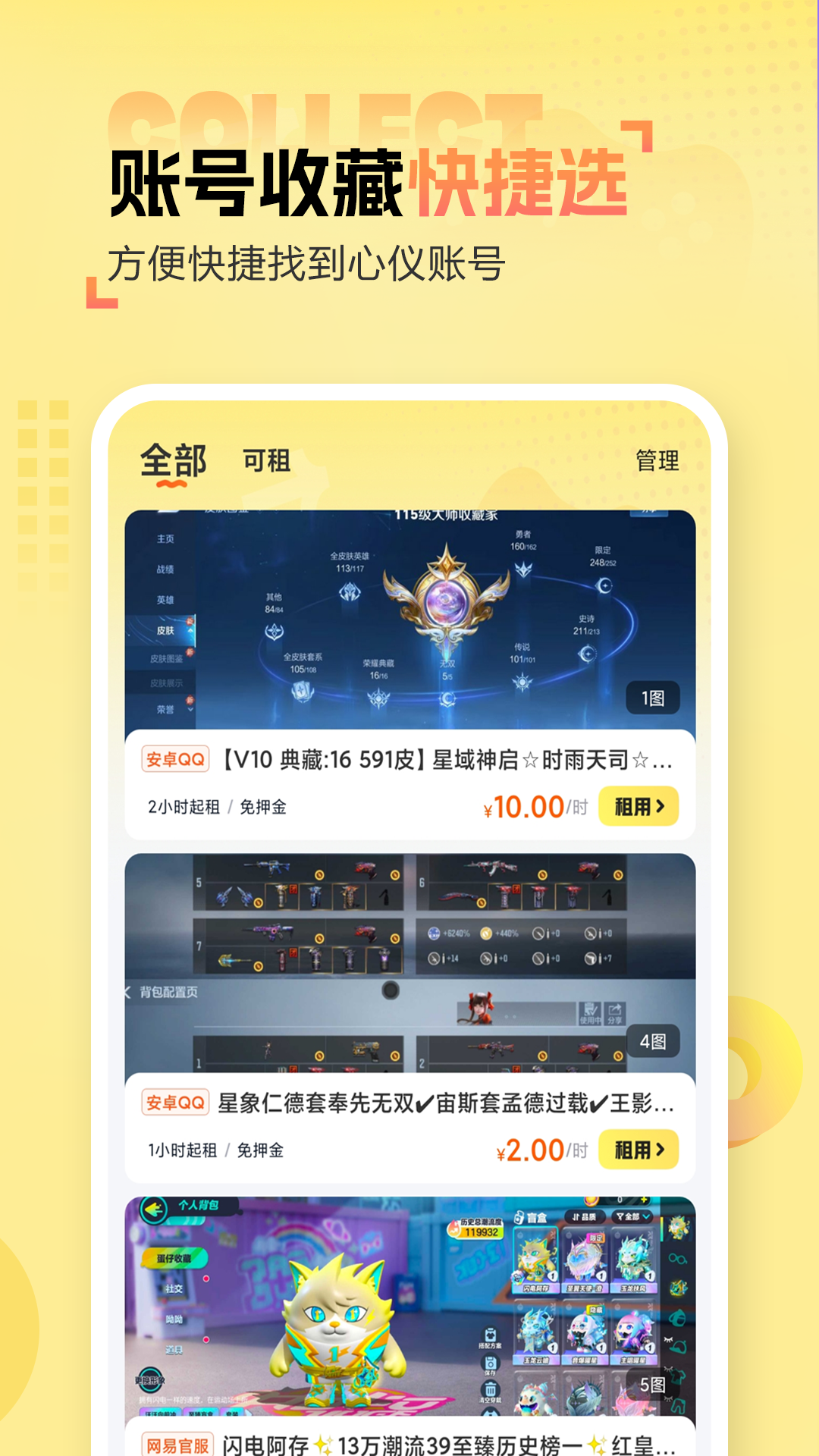 租号无忧是针对那些想要享受高端游戏体验的用户所设计的一款游戏租号产品。本产品提供游戏账号租号玩服务,让用户能够立即享受到高端大神的游戏体验。租号种类涵盖了各种热门的游戏,如王者荣耀、和平精英、QQ飞车、火影忍者等,为用户提供了不同时长的租号选择,拥有更多的灵活性。