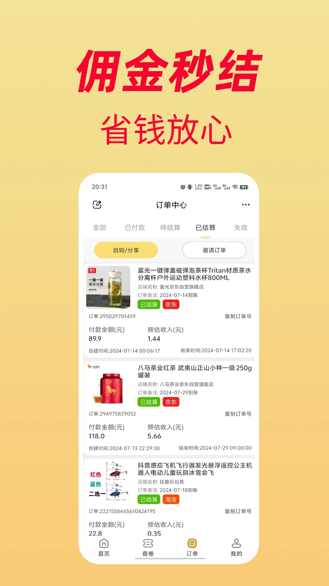 在淘宝、京东、拼多多等平台购物时,若使用牛马省钱,下单之后就能获得返利。返利到账速度很快,并且可以随时提现到支付宝哦。
