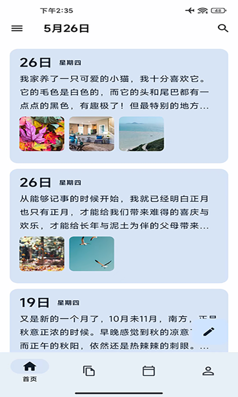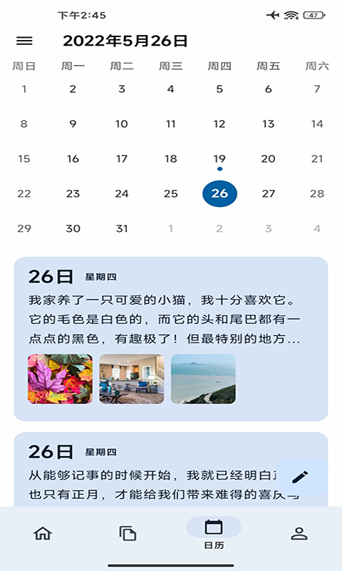 「离线编辑」:即便处于未联网状态也能够进行编辑,随手写日记、查看修改都没问题,真正做到随时随地记录与查看。
