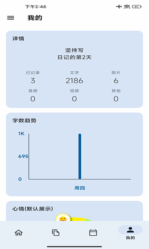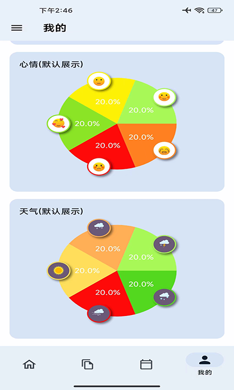 「心情统计」:能够对过去的心情状况进行记录统计。