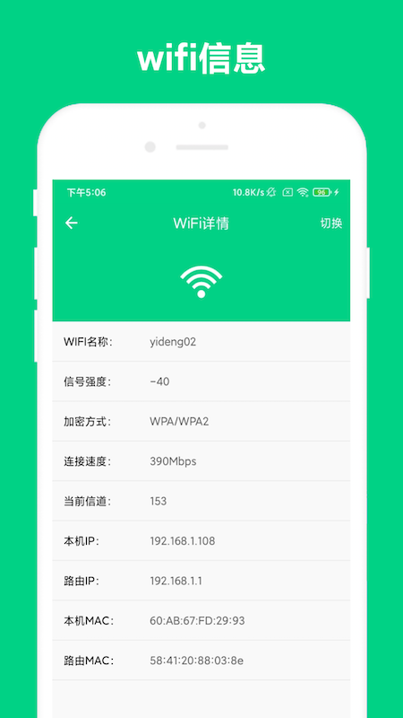 路由助手是一款用于局域网设备管理的软件。其目前具备以下功能:能够查看局域网中的所有设备列表;支持局域网下手机之间进行免流量的文件传输;可以快速地将文件传送给电脑,也能实现电脑向手机传输文件;还能查看网络速度,以及查看WiFi的详细信息等。