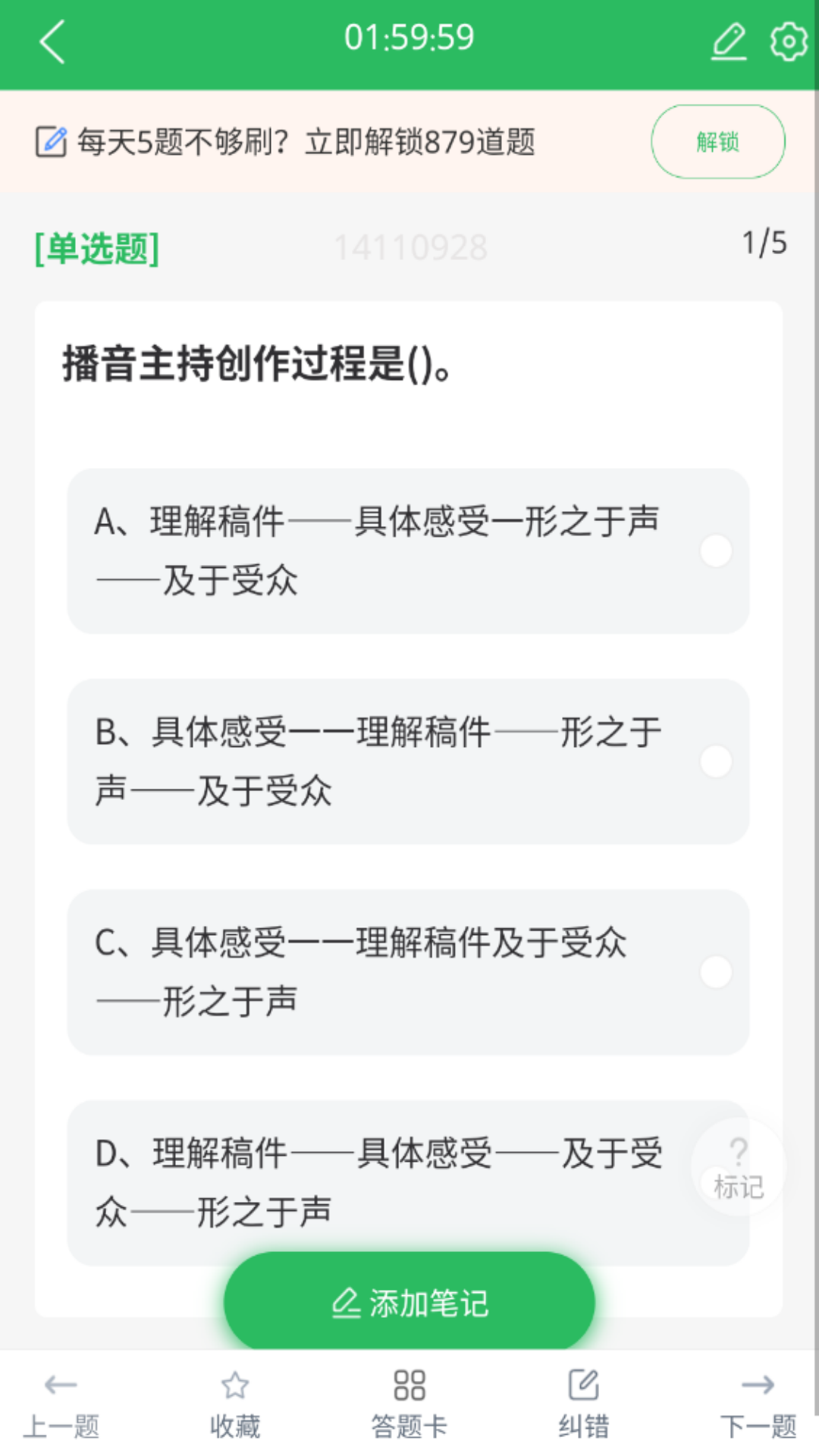 播音主持人题库APP具备多种学习与做题模式,如模拟考场、历年真题练习、快速练习、考点练习、考试押题、做题记录等。这些丰富多样的模式将陪伴您一起应对播音主持人考试。