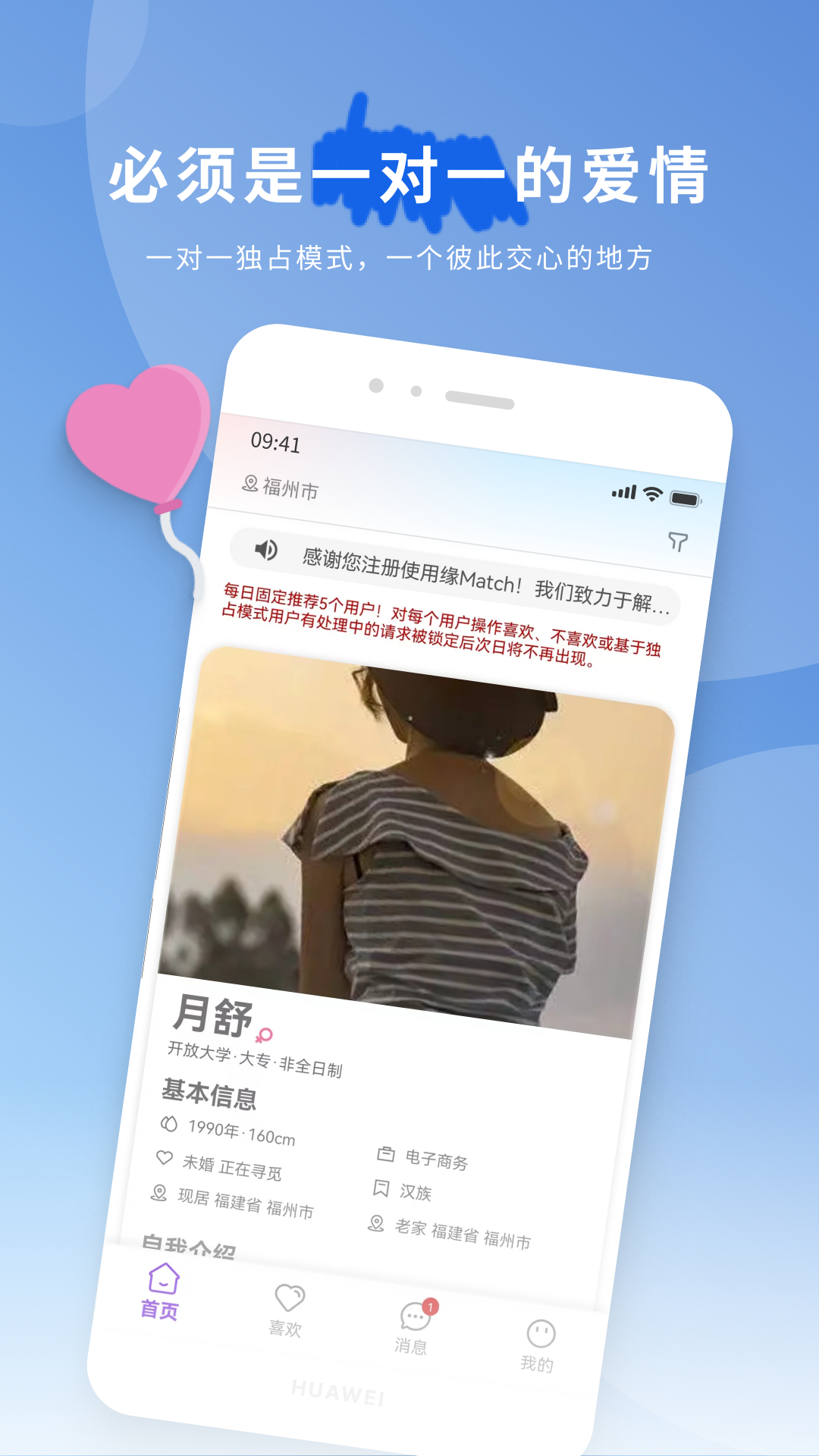 缘Match 是一款专门为适龄青年打造的实名制婚恋平台。要求每个注册用户必须完成手机验证、实名认证、学历认证后,才可发起交换资料等操作。平台主旨在于减少信息差,让有意愿的适龄青年不再苦于身边没有异性资源而无法脱单。因此,平台没有花哨的个人动态展示和聊天功能,纯粹奔着婚姻去。合适即申请交换资料,一发起申请基于独占模式就会锁定状态,其他用户便不可再发起申请,直到接收方拒绝或终止该申请。缘Match,让爱情更纯粹,让婚姻更靠谱。