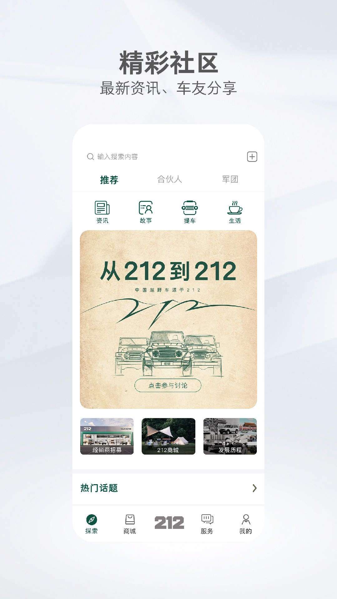 212越野车APP是一个专为越野爱好者打造的专业平台,这里汇聚了丰富的越野资源,是越野爱好者互动交流的绝佳之地。