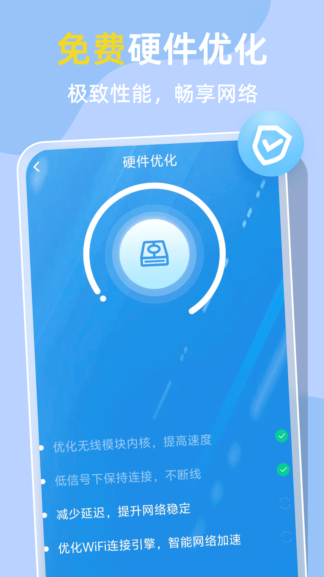闪速WiFi连提供实用的WiFi小工具。它能够有效地进行WiFi安全保护,防止网络遭遇破解,确保您的网络数据不被不法分子窃取。此外,我们的硬件优化功能可以智能优化您的WiFi设备性能,让网络连接更加稳定、高效。