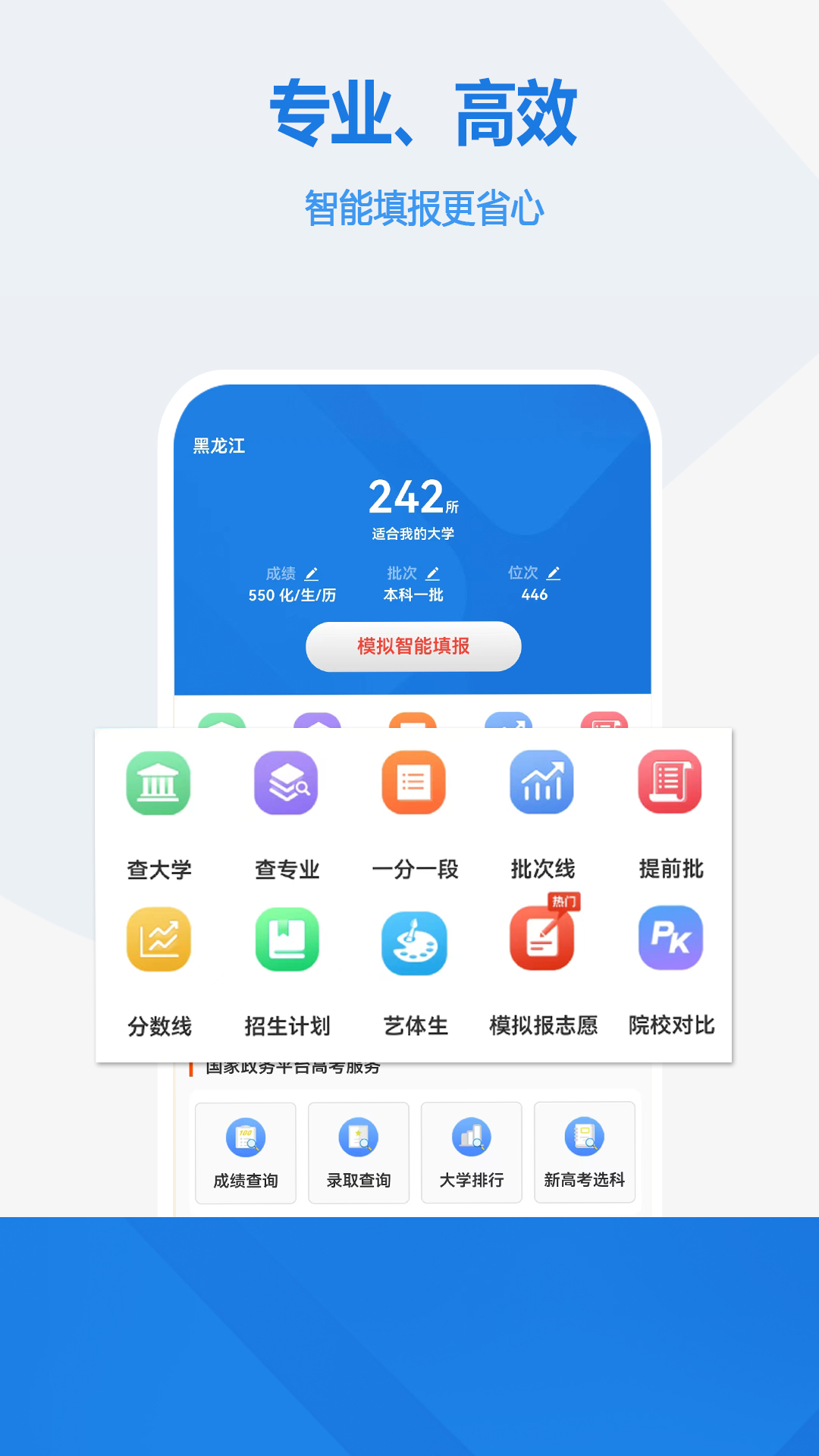 指导高考生做出更加合理、有效的志愿填报方案,升学一网通!填报系统为高考生提供院校、专业数据大全,收录全国2800多所的院校,1600多个专业的详细信息,掌上高考,