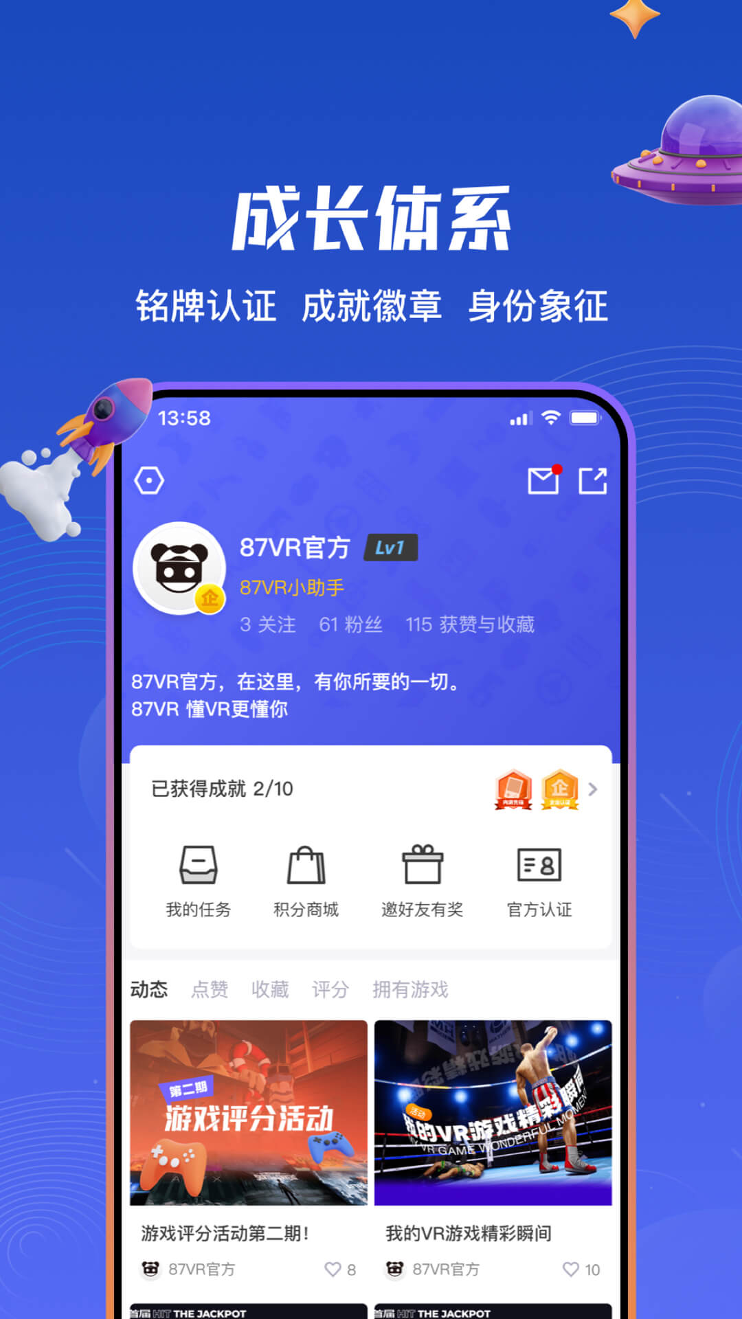 87VR社区,在这里可以看到新鲜有趣的全景视频以及刺激好玩的VR游戏,同时可以连接管理你的VR设备,手机与头显中的媒体文件互传。这里是志同道合的朋友、资深玩家、游戏收藏家、知名评测人、游戏UP主、独立开发者、硬件厂商的交流聚集地。打开87VRapp,让你的VR世界更简单。