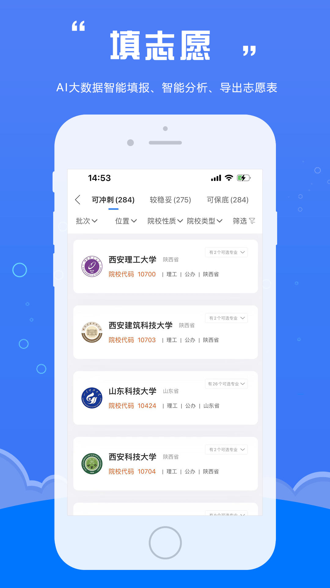 上京e志愿APP依托高考大数据、云计算、人工智能等前沿技术,充分考量学生的职业规划、高考分数以及家庭意愿等个性化因素,精心打造适合考生的高考报考一站式个性化解决方案。通过这一方案,助力考生升入更理想的大学,就读更优质的专业,进而在未来能够拥有更美好的职业发展前景!