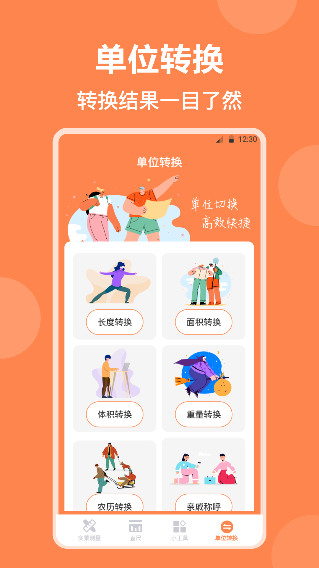 - 多种计算工具,日期计算、长度换算,面积换算、体积换算、重量换算、亲戚称呼计算等。