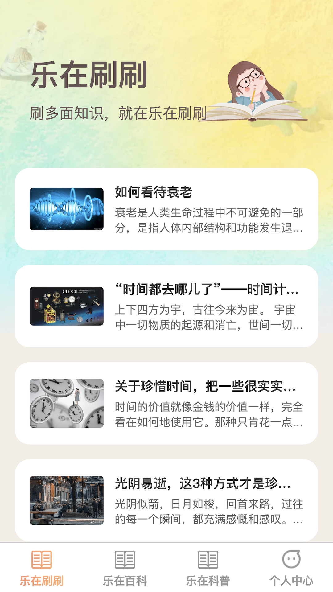 【乐在刷刷】深入探索多样的科普知识,包括如何看待衰老的科学解析、时间的奥秘等。
