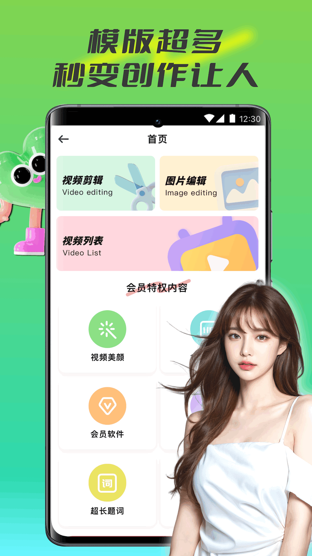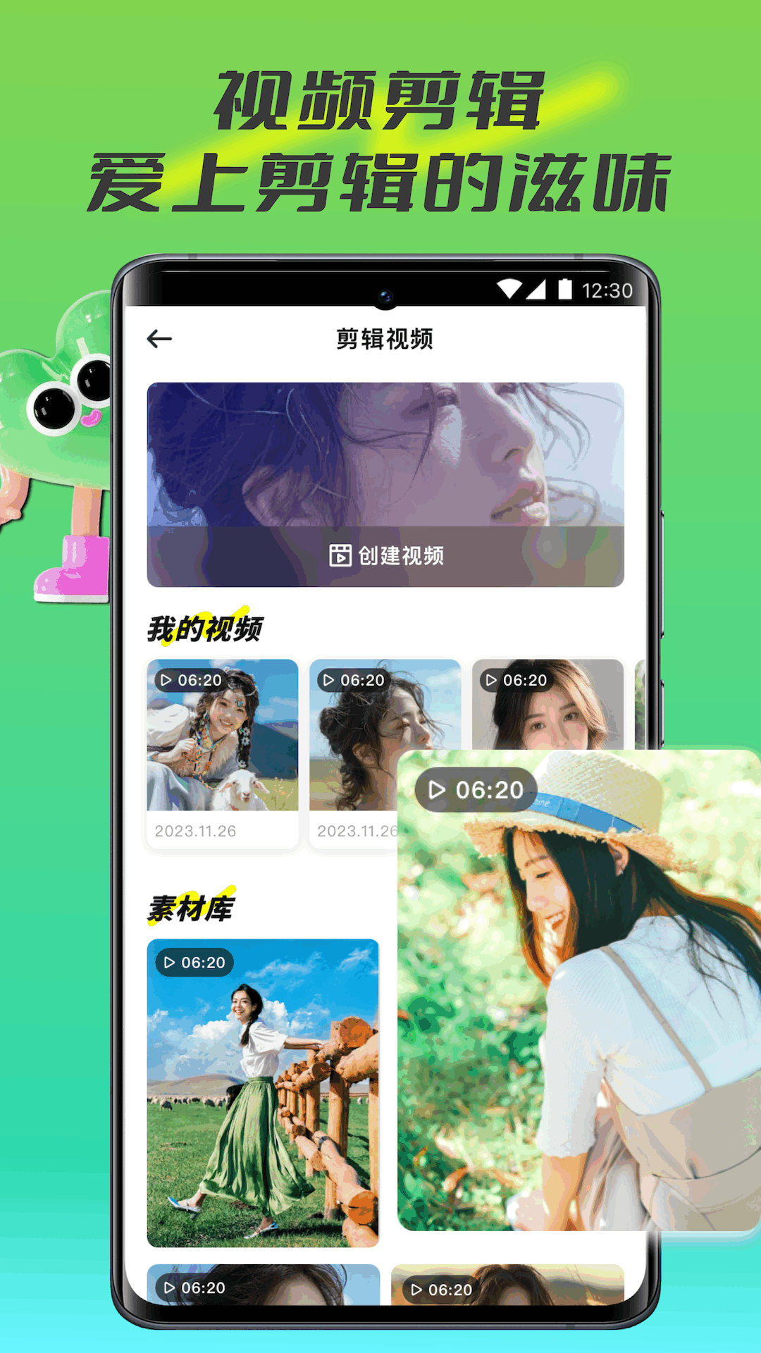 这里的视频剪辑高效便捷,会让您爱上剪辑的美妙感觉。您能一键创建视频,素材库中的素材任您选取。