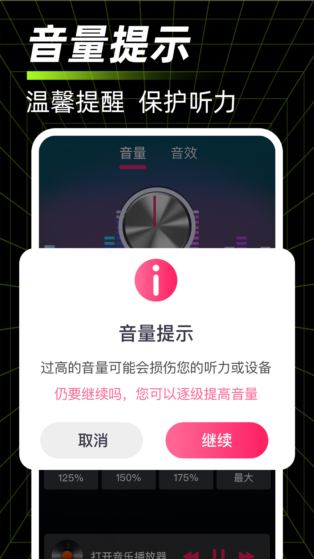 手机听筒扩音器,智能扩音,一键放大手机音量,设置你的手机喇叭音效后选择放大比例,即可在原来的基础上放大1.25、1.5、1.75、2倍;操作简单好上手,扩音效果好。