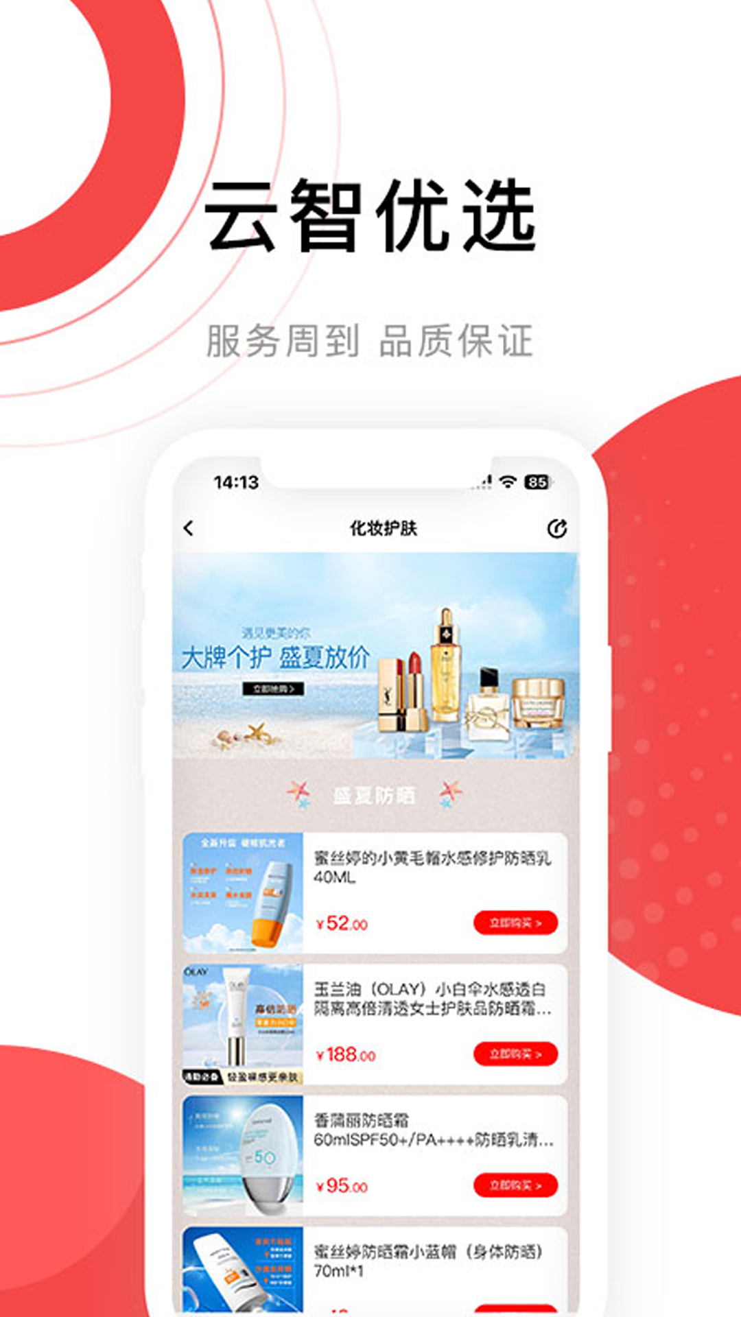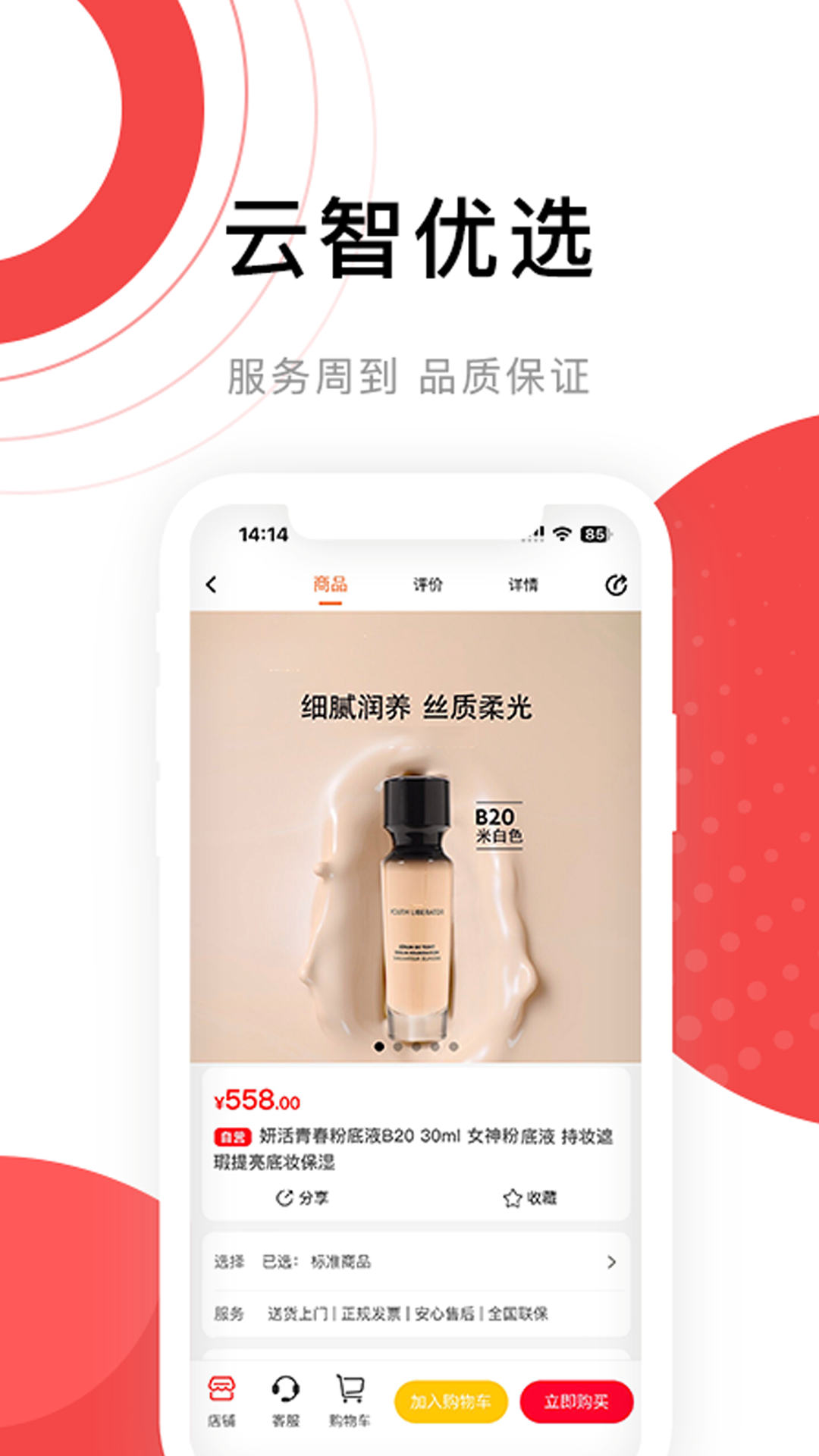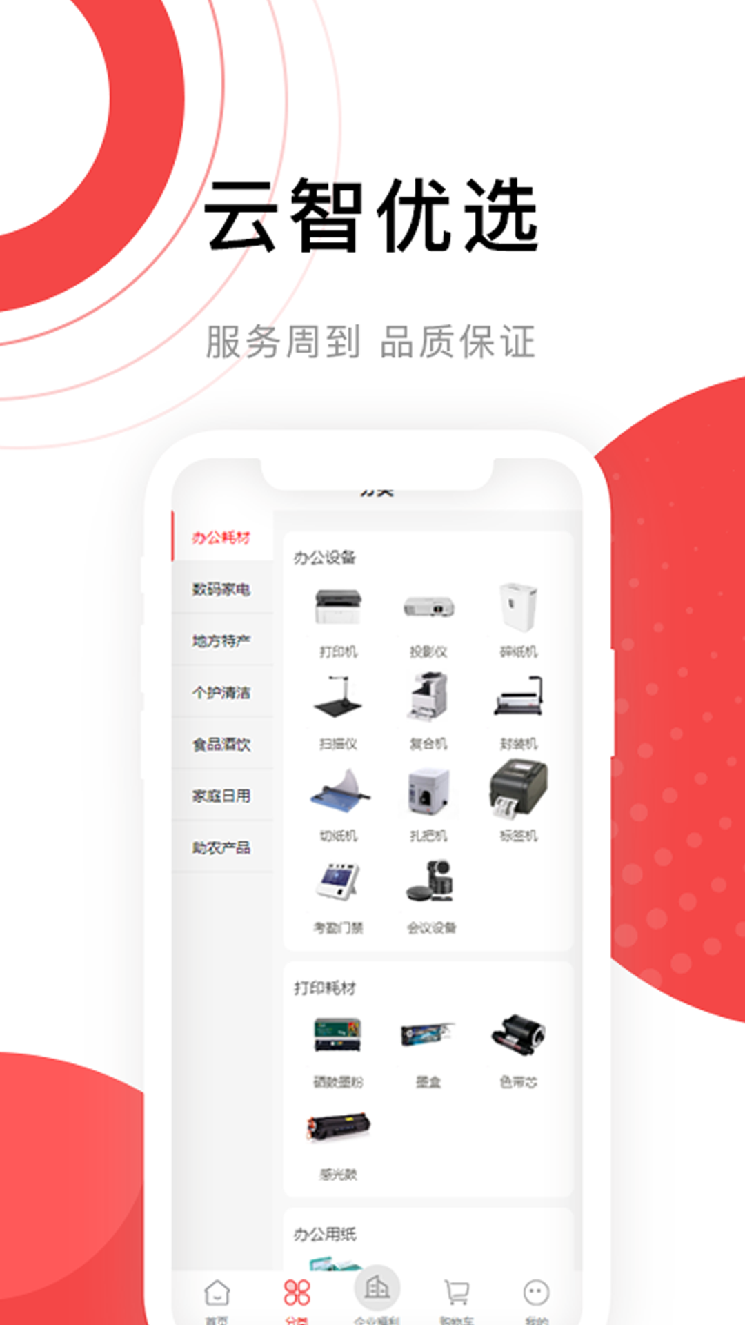 云智优选平台致力于服务个人与企业,秉持品质、专业、服务的核心理念,着力推广高端的电商平台品牌形象。这是一个集自营店铺与商家店铺于一体、品类齐全的大型电商平台。