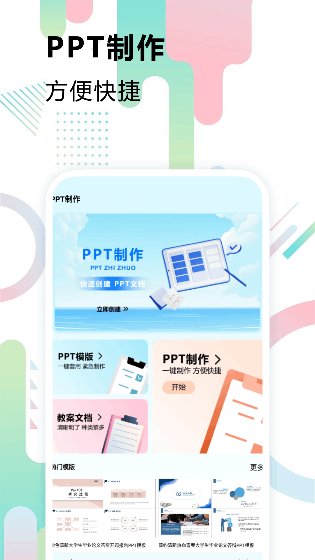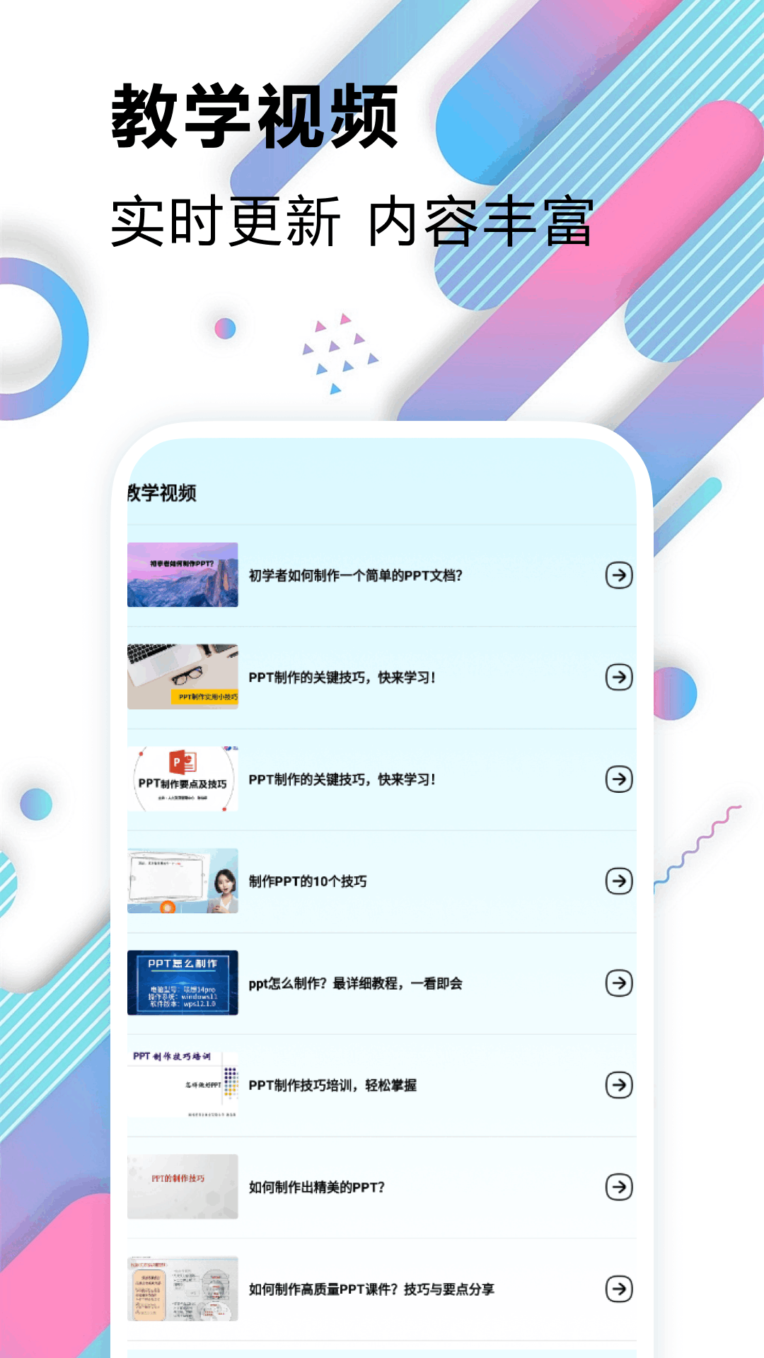 PPT模板是一款移动端应用软件,它集PPT模版、PPT浏览和PPT编辑功能于一身。同时,这款软件还涵盖了部分教学视频,并且提供了一些制作ppt的技巧哦。更多精彩内容,等你来解锁!