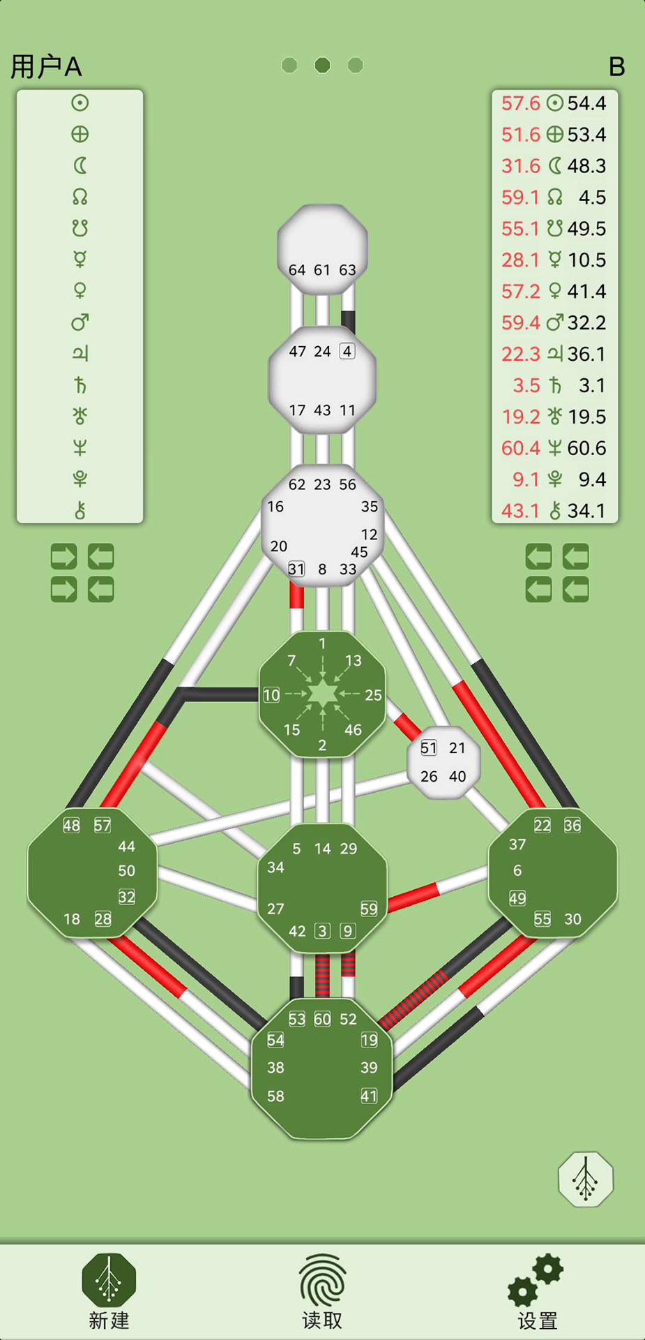 这是一款专注于人类精微能量系统的专业图形软件,其中涵盖了个人图、合图、流日图以及回归图。