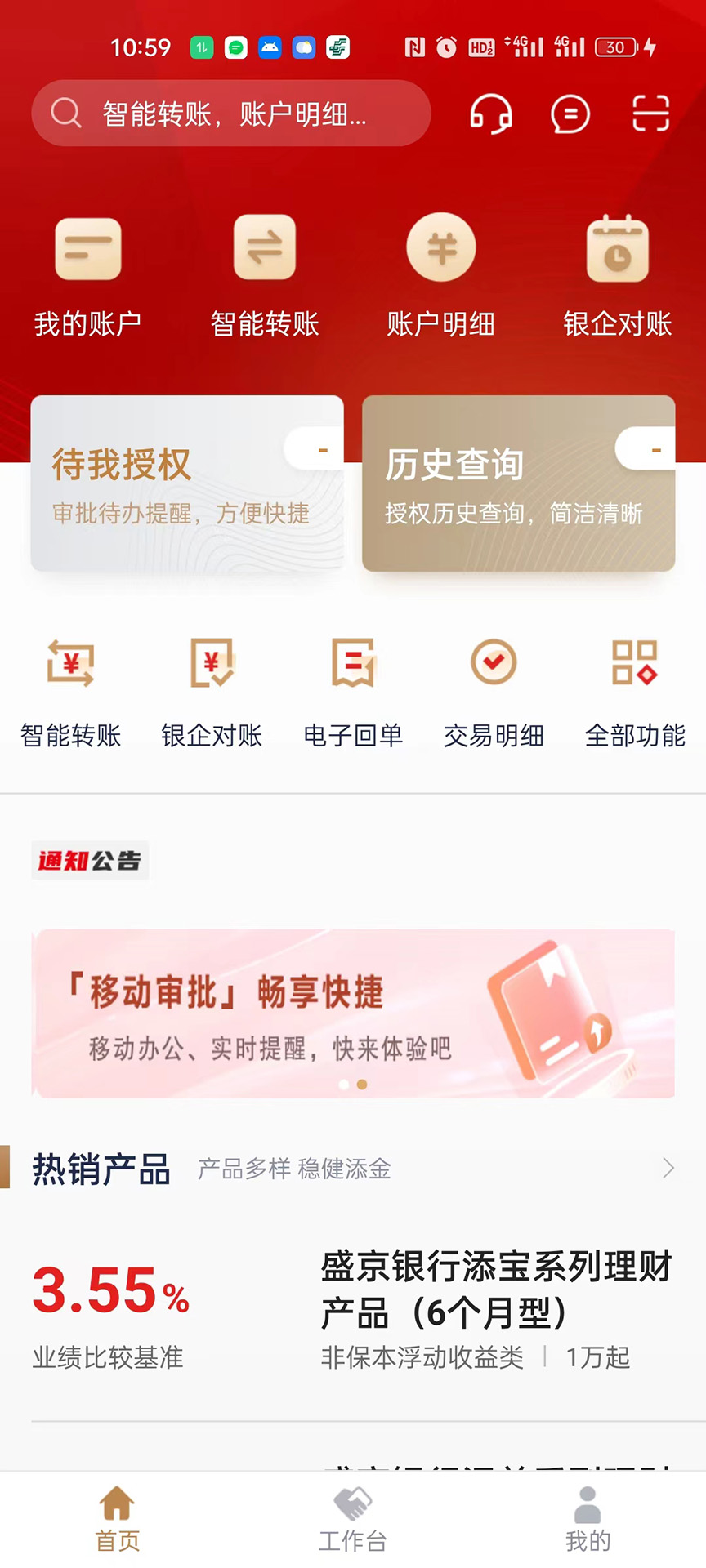 盛京银行企业版APP乃我行专为企业客户精心打造的移动金融服务平台。在这个平台上,手机银行和网上银行达成互联互通的状态,从而能够为企业客户提供全年无休(7*24小时)、安全又便捷的多种移动金融服务,其中包括账户查询、转账汇款、移动授权以及银企对账等服务。