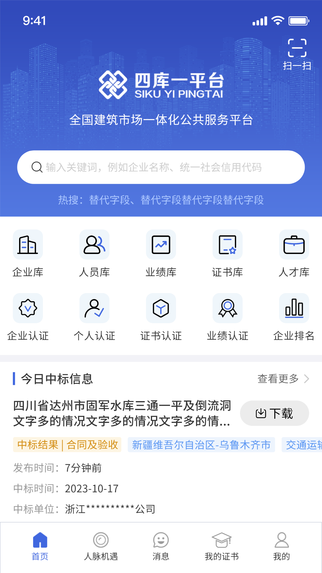 四库一平台致力于构建全国建筑产业综合服务平台,打造中国建筑行业互联互通、资源共享、资本共享的互助性平台,从而达成全社会共享资源、资本与财富的目标。