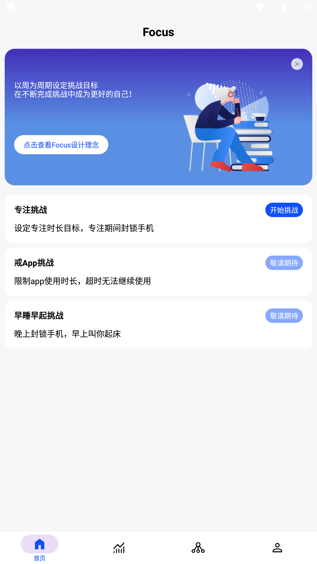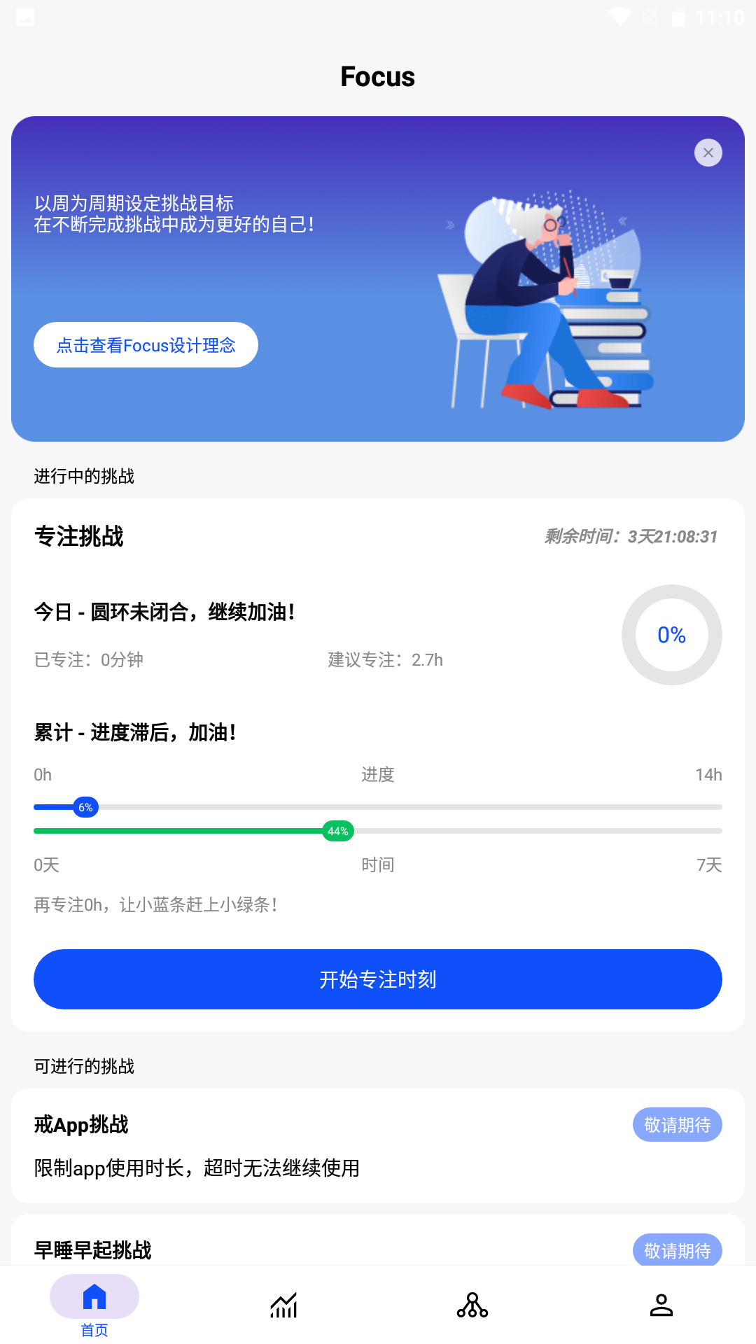通过设定每周的专注挑战,你将可以提升自己的专注力和效率。无论你的挑战是学习新的技能,阅读那本你一直想读的书,还是在健身房挥汗如雨,Focus都会成为你实现目标的得力助手。